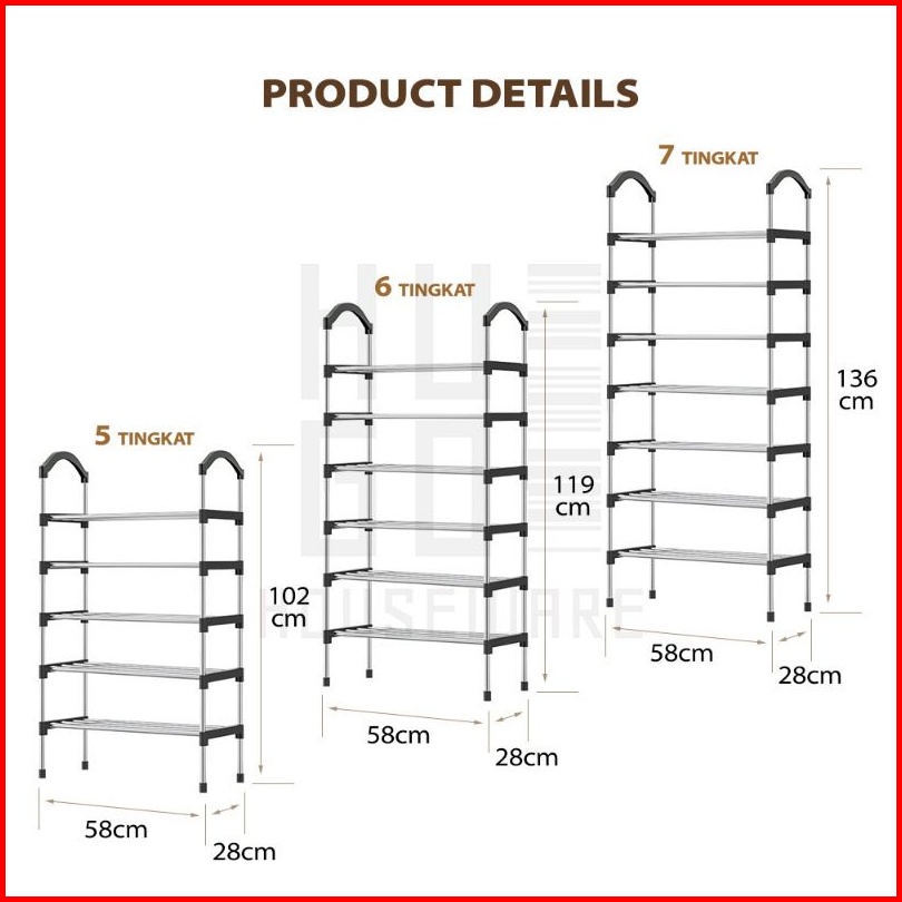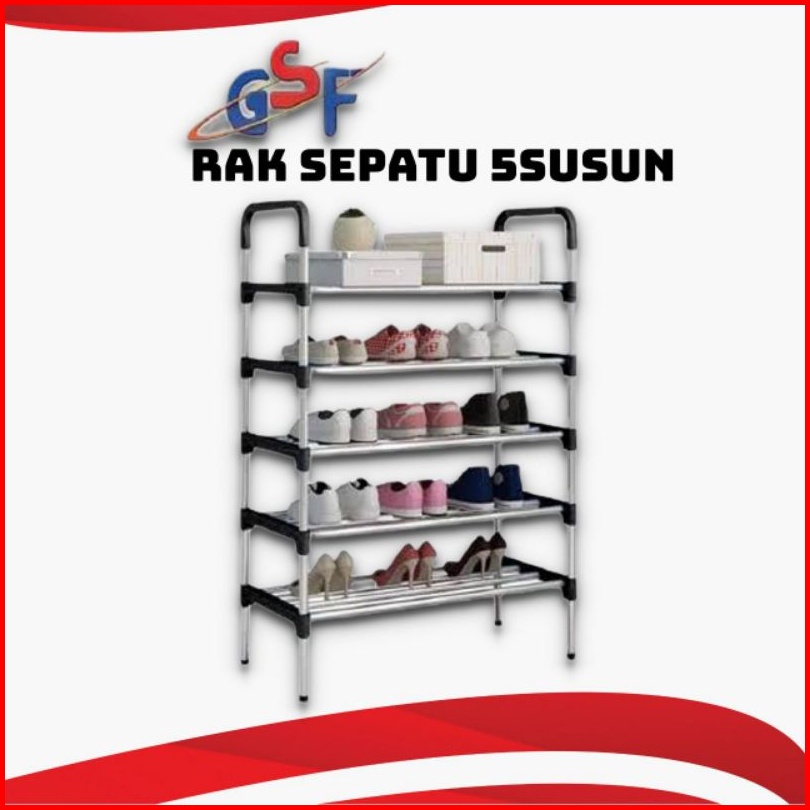Rak Sepatu Stainless Steel 5 Susun Kuat Tempat Sepatu Sandal Multifungsi 5tingkat