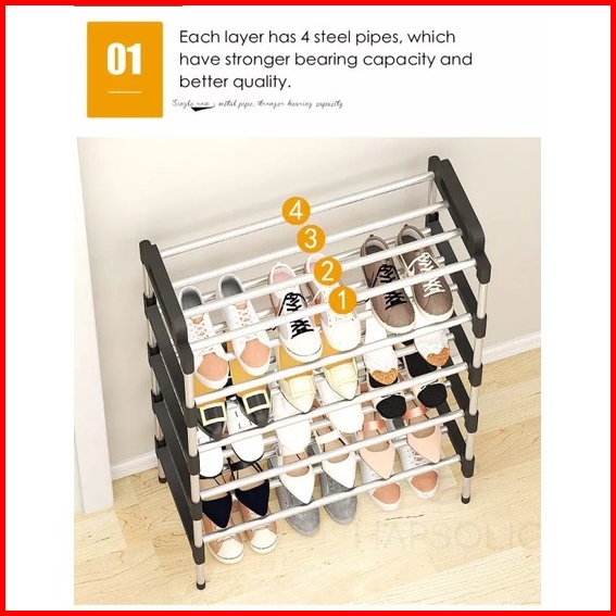 Rak Sepatu Stainless Steel Rak Sandal Serbaguna 4 Tingkat Dan 5 Tingkat