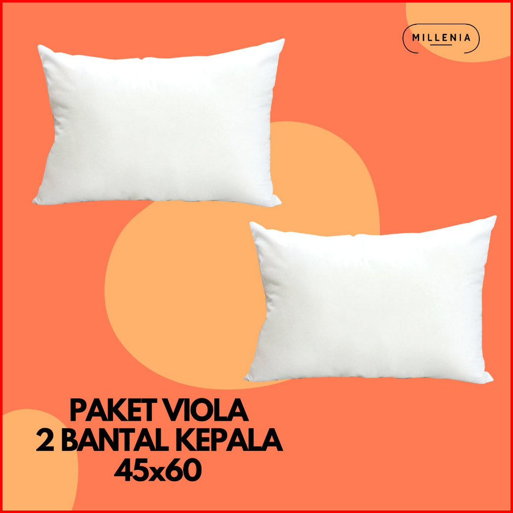 Paket Bundling 2pcs Bantal 45x60 Atau 2 Guling Viola 20x75 Putih Empuk Dan Nyaman Lembut Bisa Dicuci Kain Bed Resleting