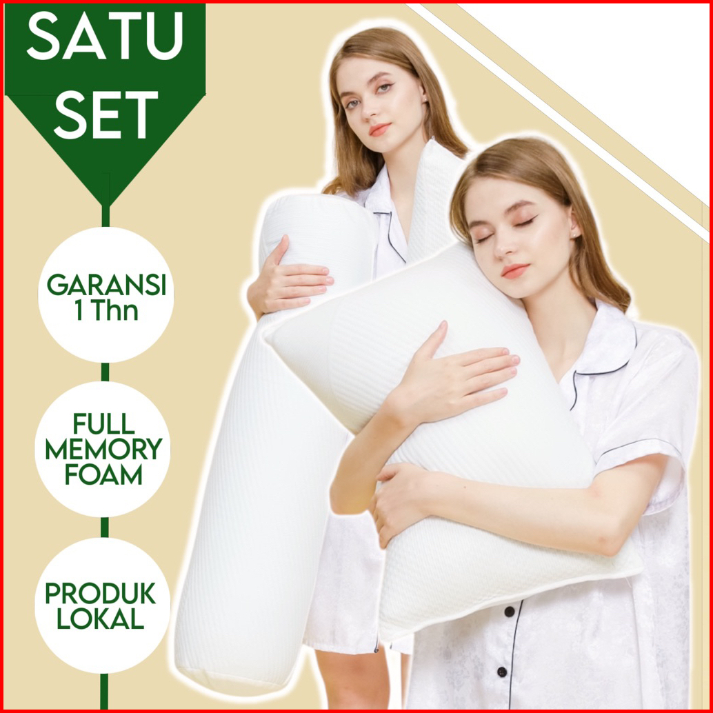 1 Set - Bantal Guling Hotel 45 X 65 Full Memory Foam Anti Kempes Anti Mengggumpal Empuk Lembut Jiambar