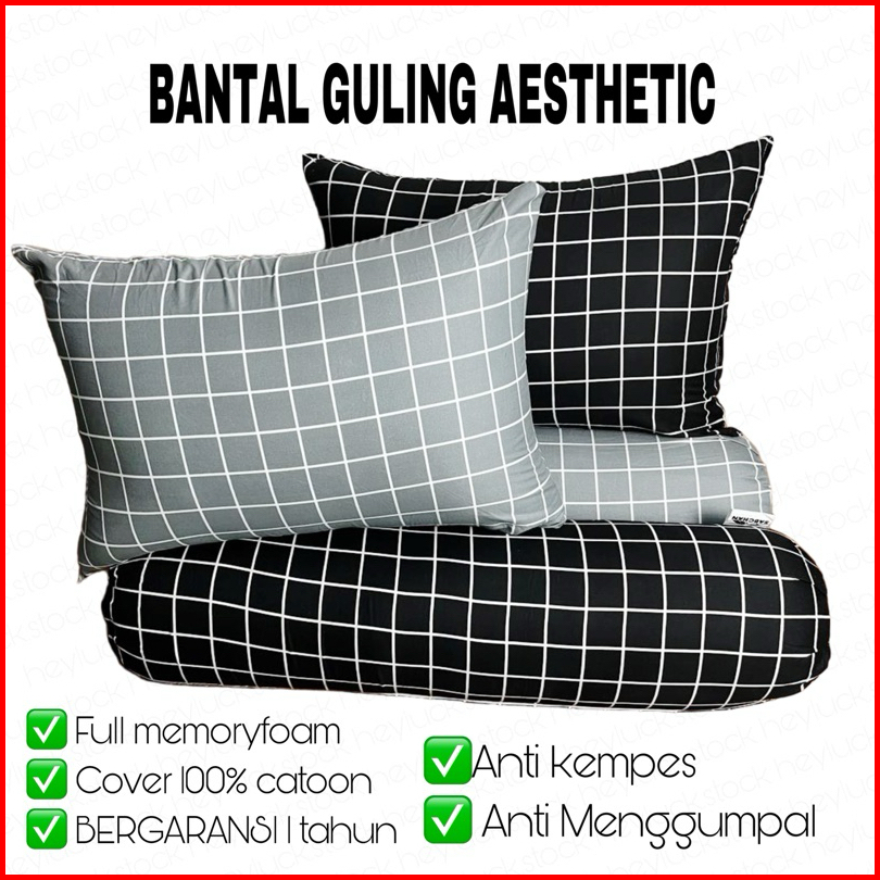 1 Set Bantal Guling Hotel Cover Aesthetic Hitam Abu Full Memory Foam Garansi 1 Empuk Anti Kempes Rudi.collection