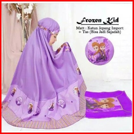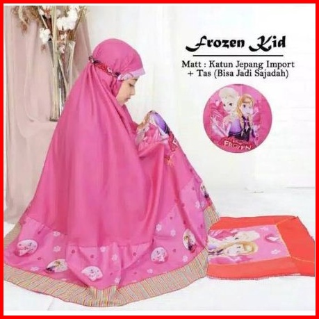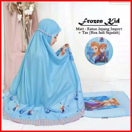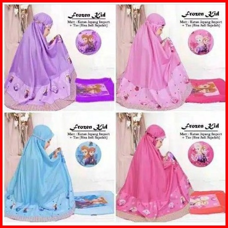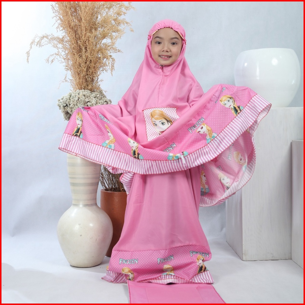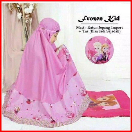 Mukena Anak Frozen Kids 4 Size S M L Xl Umur 2 - 10 Tahun Set Sajadah Wajah Dan Tas Lipat