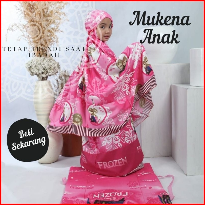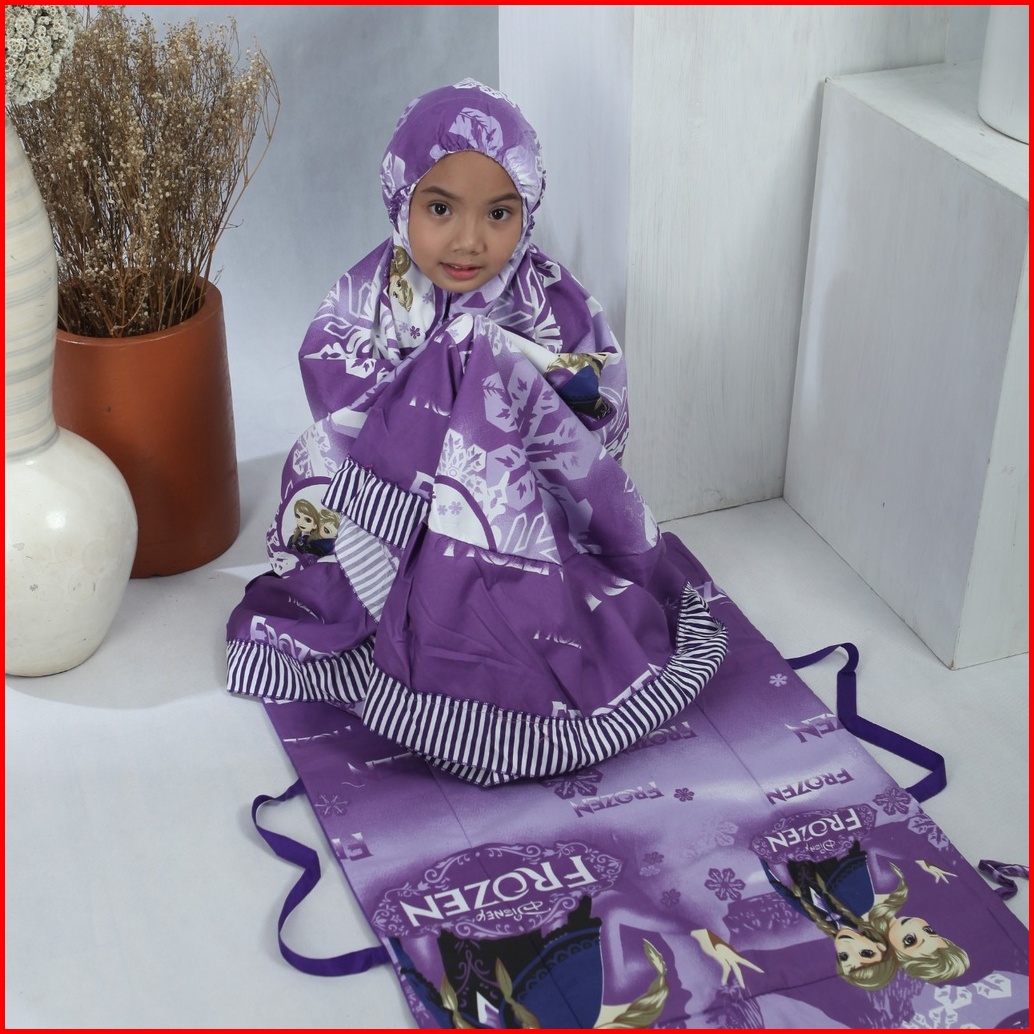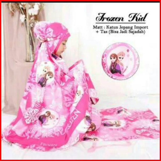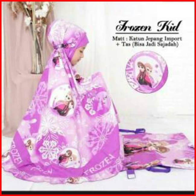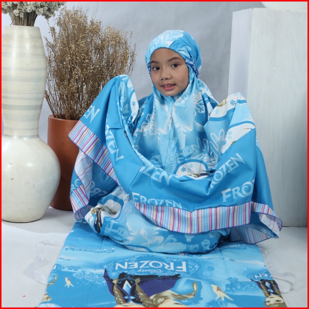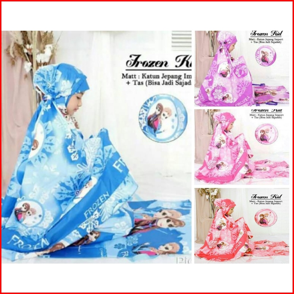 Mukena Anak Perempuan Motif Frozen Kids 4 Warna 4 Ukuran Set Sajadah Jumbo Dan Tas Bahan Katun