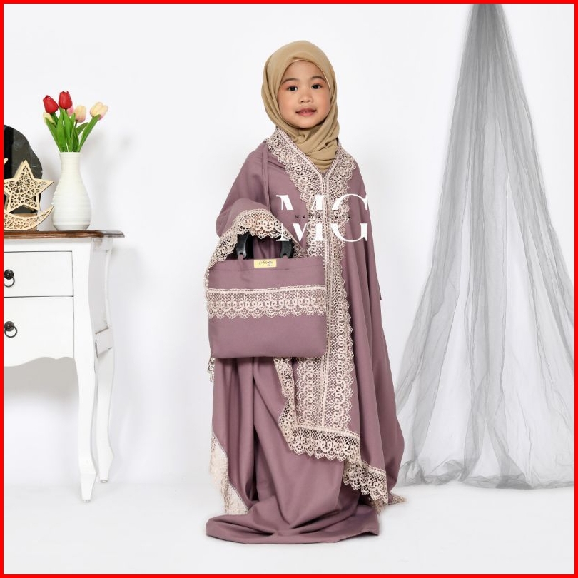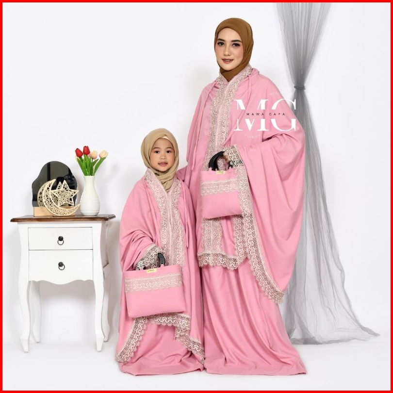 Mukena Anak Perempuan 2in1 Resleting Aktip Katun Renda Grasela Bisa Couple