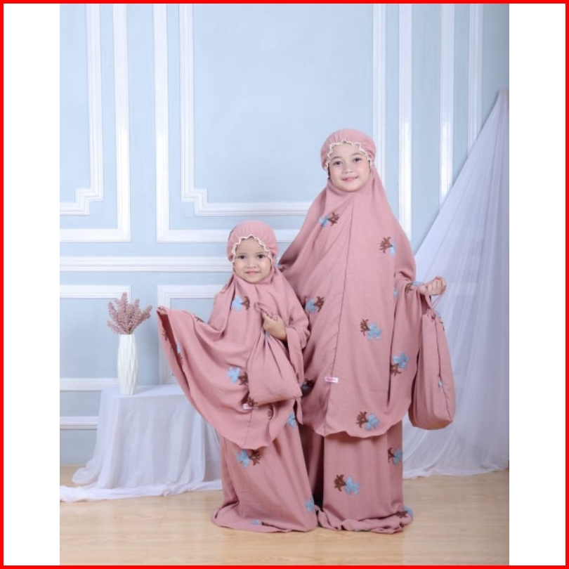 Mukena Crinkle Airflow Puff Bordir Timbul Jacquard Emboss Ori De.al Mukena Anak 2-6 Tahun