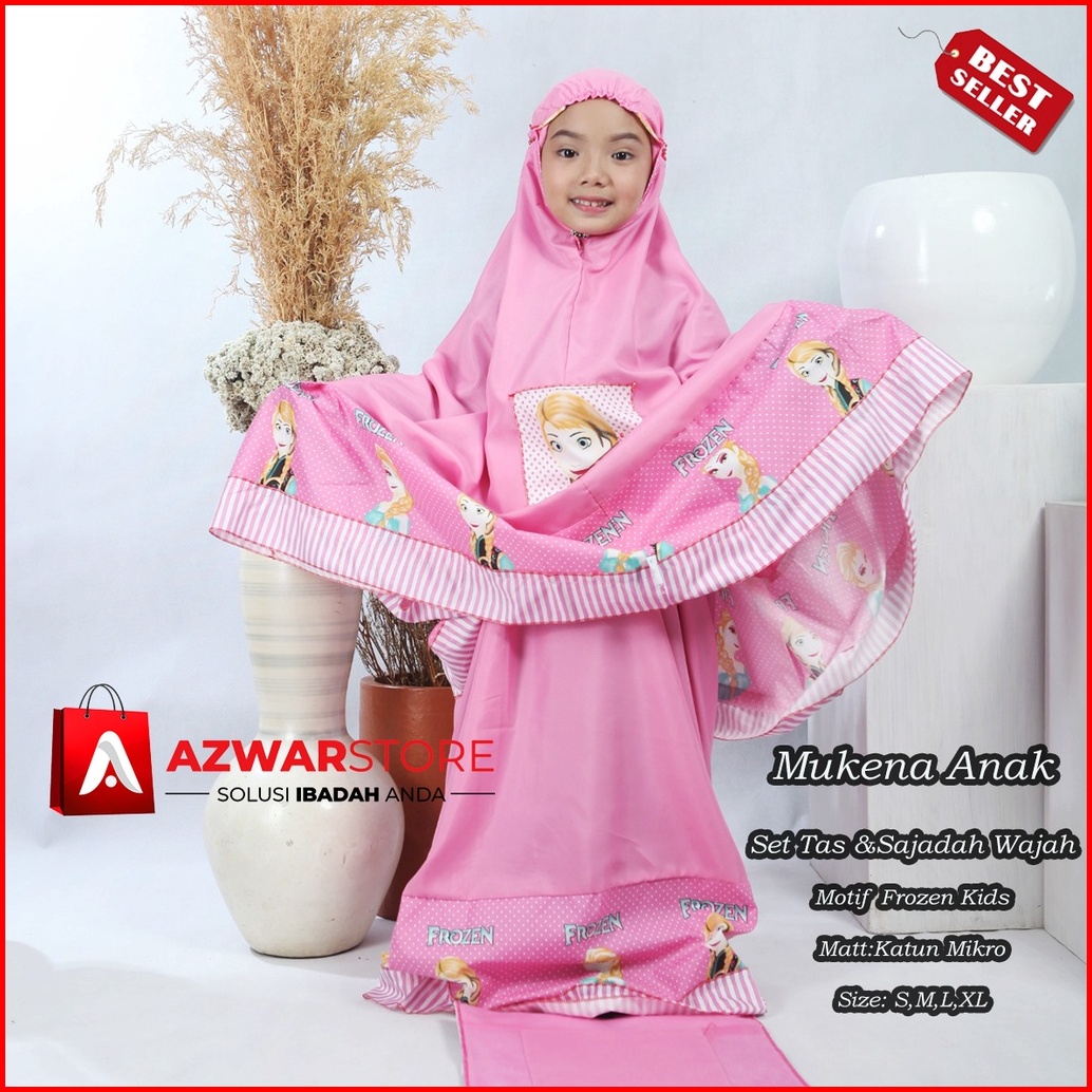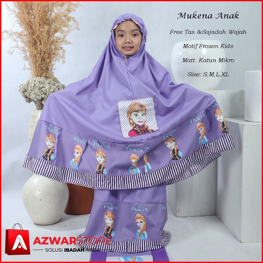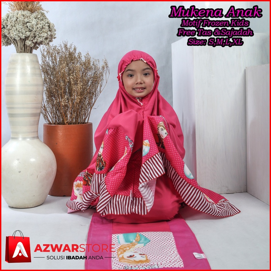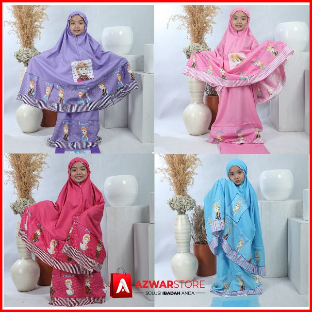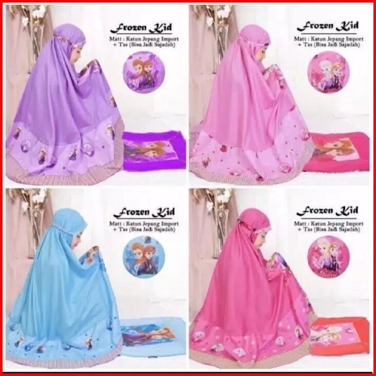 Mukena Anak Perempuan Motif Frozen Kids 4 Size 4 Warna Untuk 2 - 10 Tahun Lengkap Tas Dan Sajadah