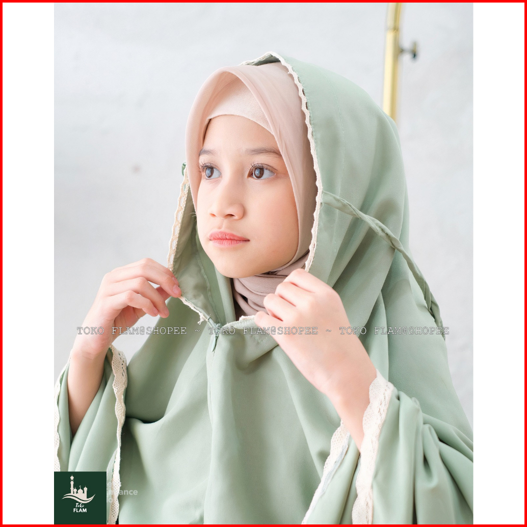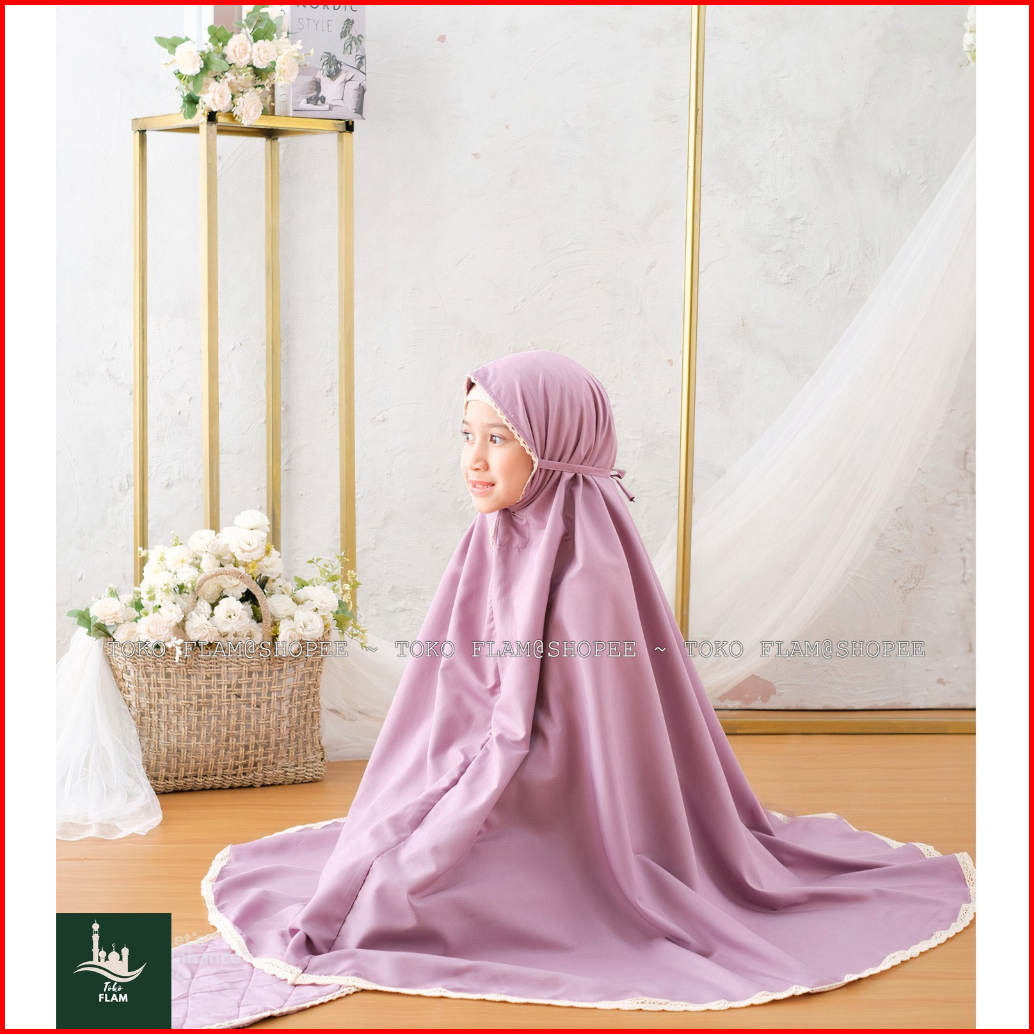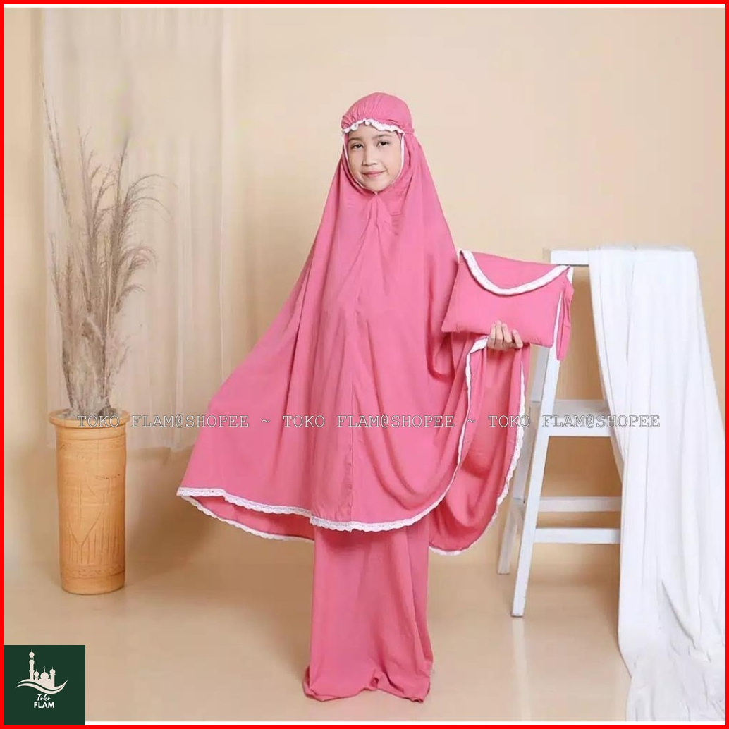 Flam Mukena Anak Tanggung Sheila Amplop Travelling Bali Polos Renda Resleting 2in1 Fatimah