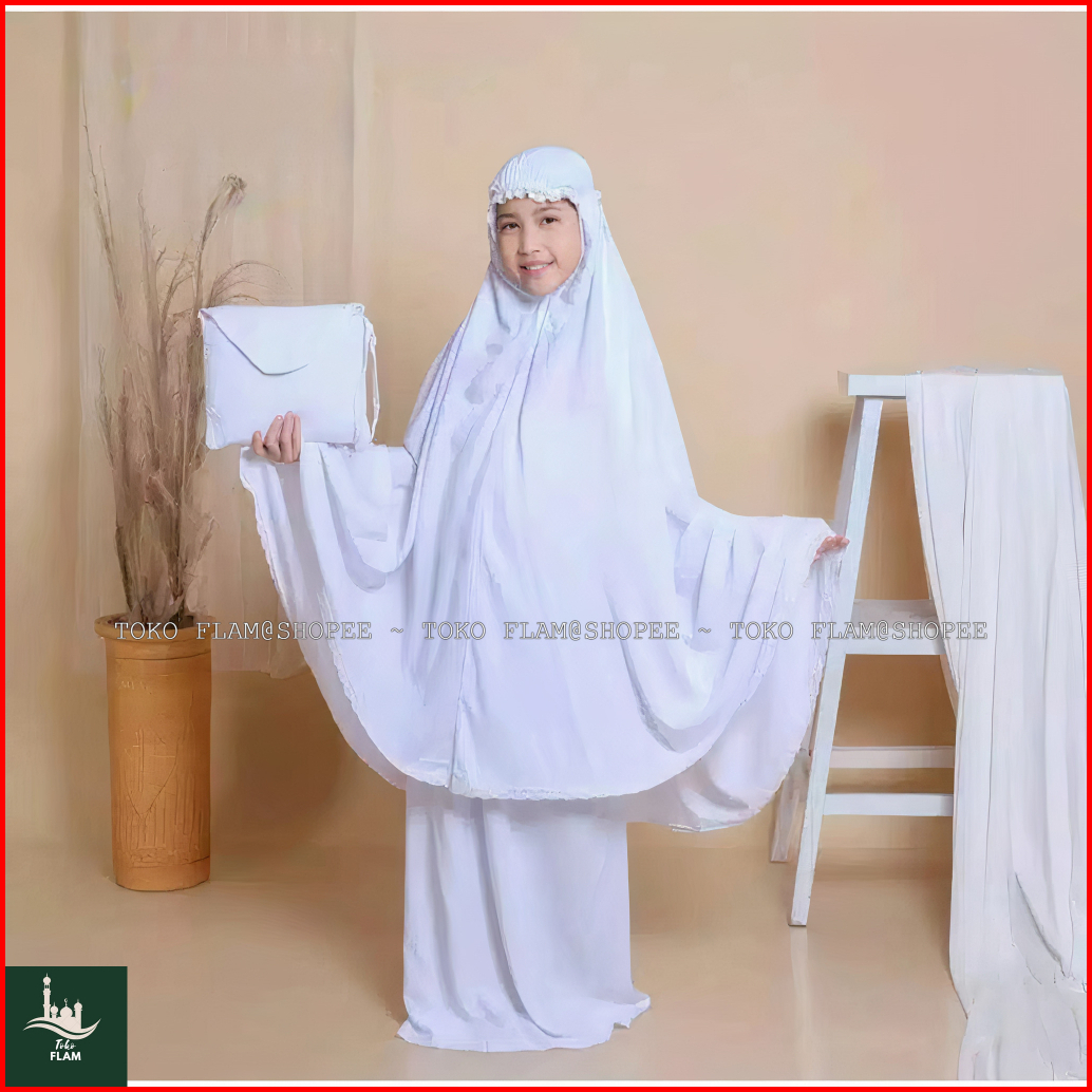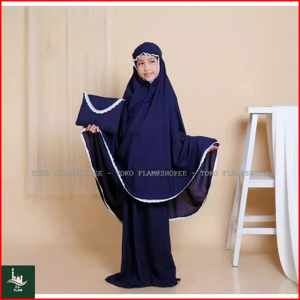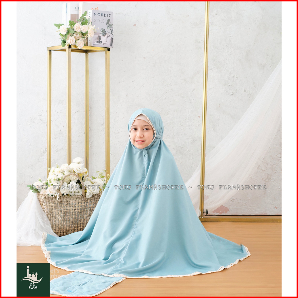 Flam Mukena Anak Tanggung Sheila Amplop Travelling Bali Polos Renda Resleting 2in1 Fatimah