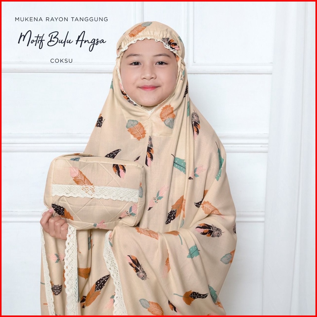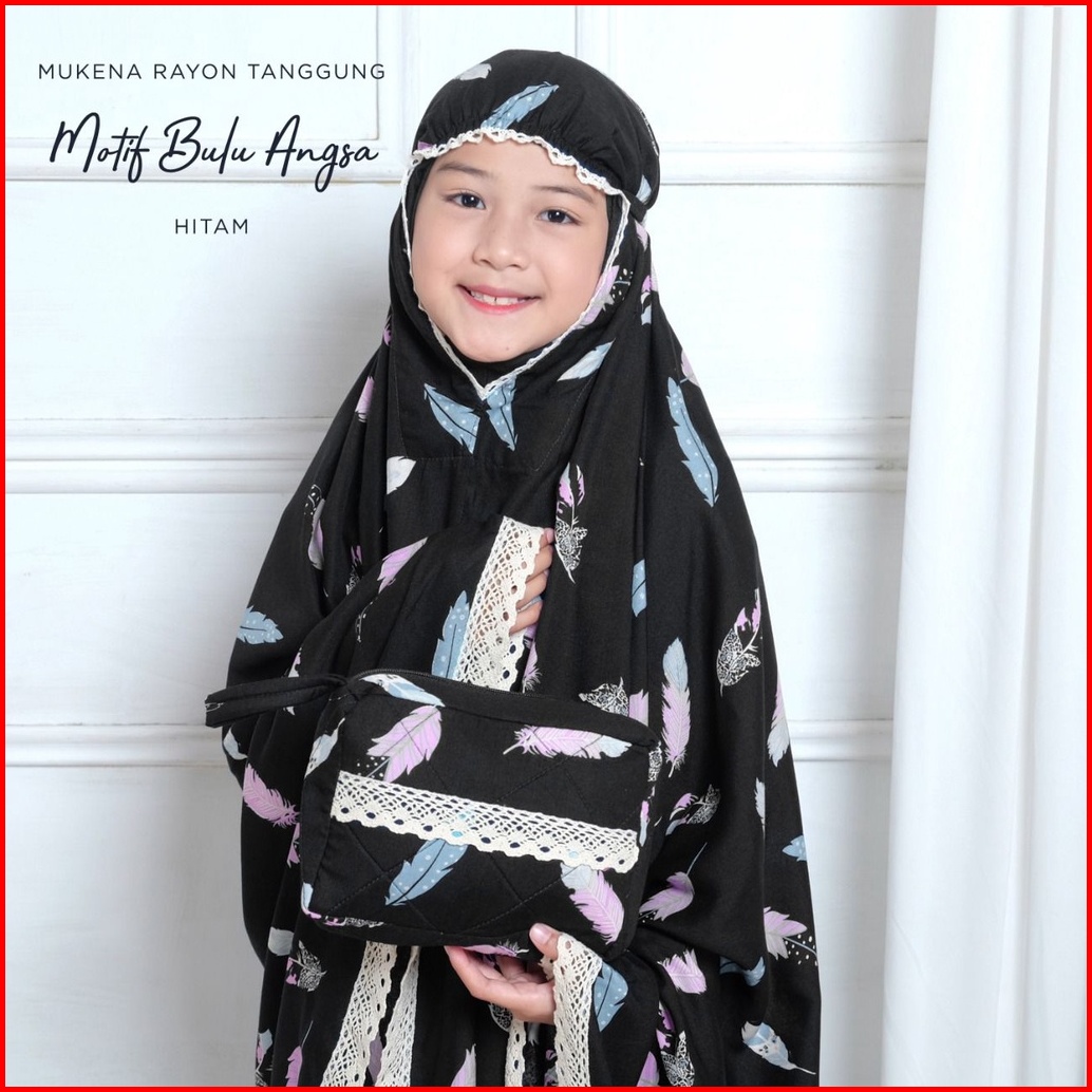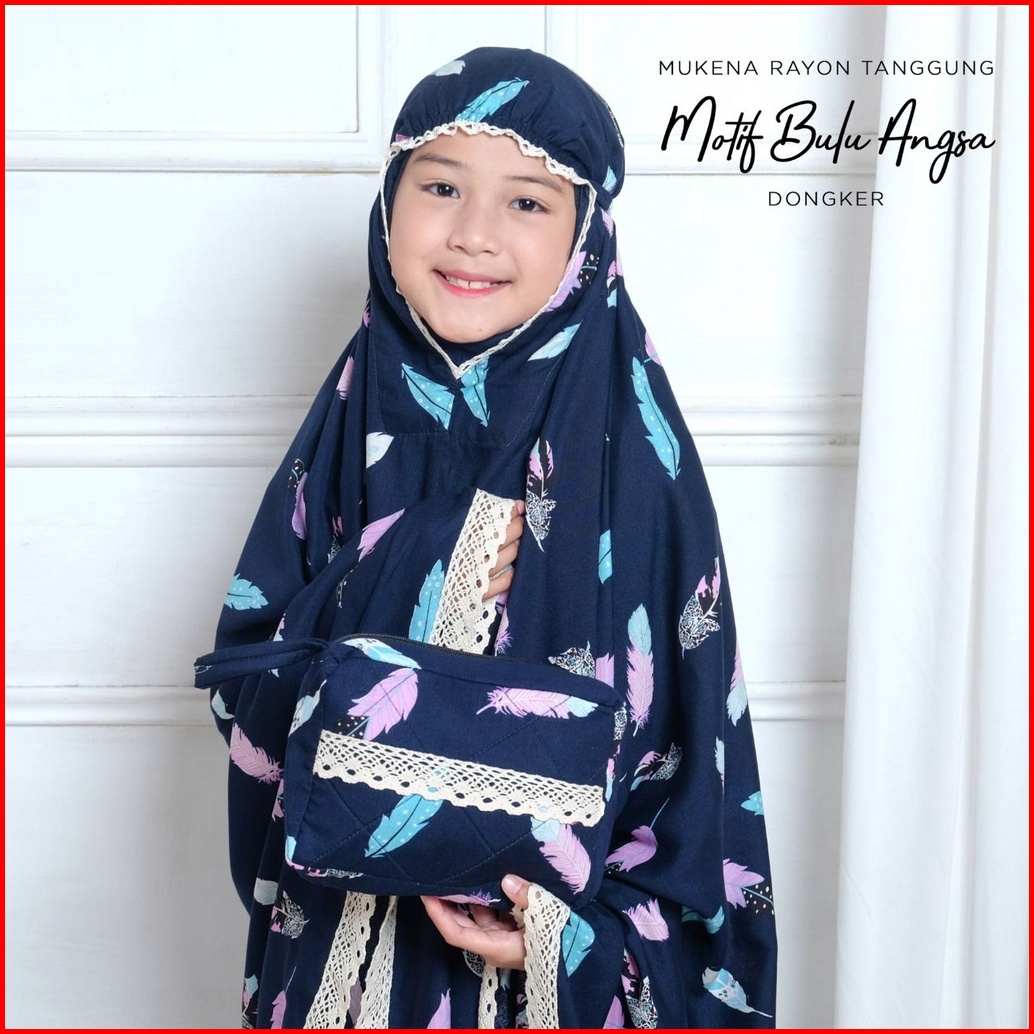 Pusat Grosir Mukena Tasik - Mukena Anak Rayon Tanggung Motif Bulu Angsa