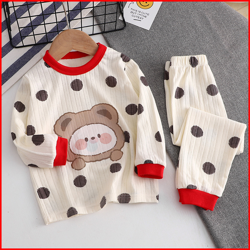 Mibaby Baju Tidur Anak Setelan Piyama Set Lengan Panjang Dengan Bahan Lembut