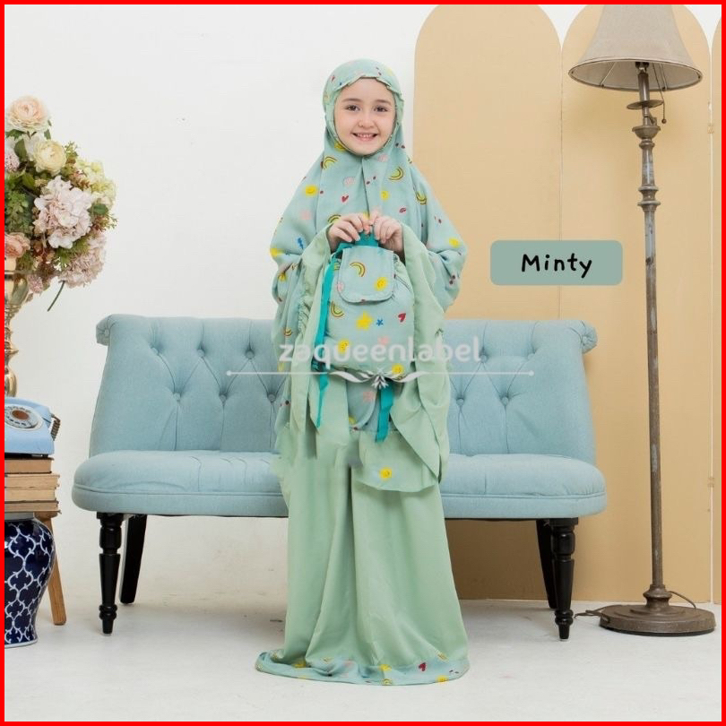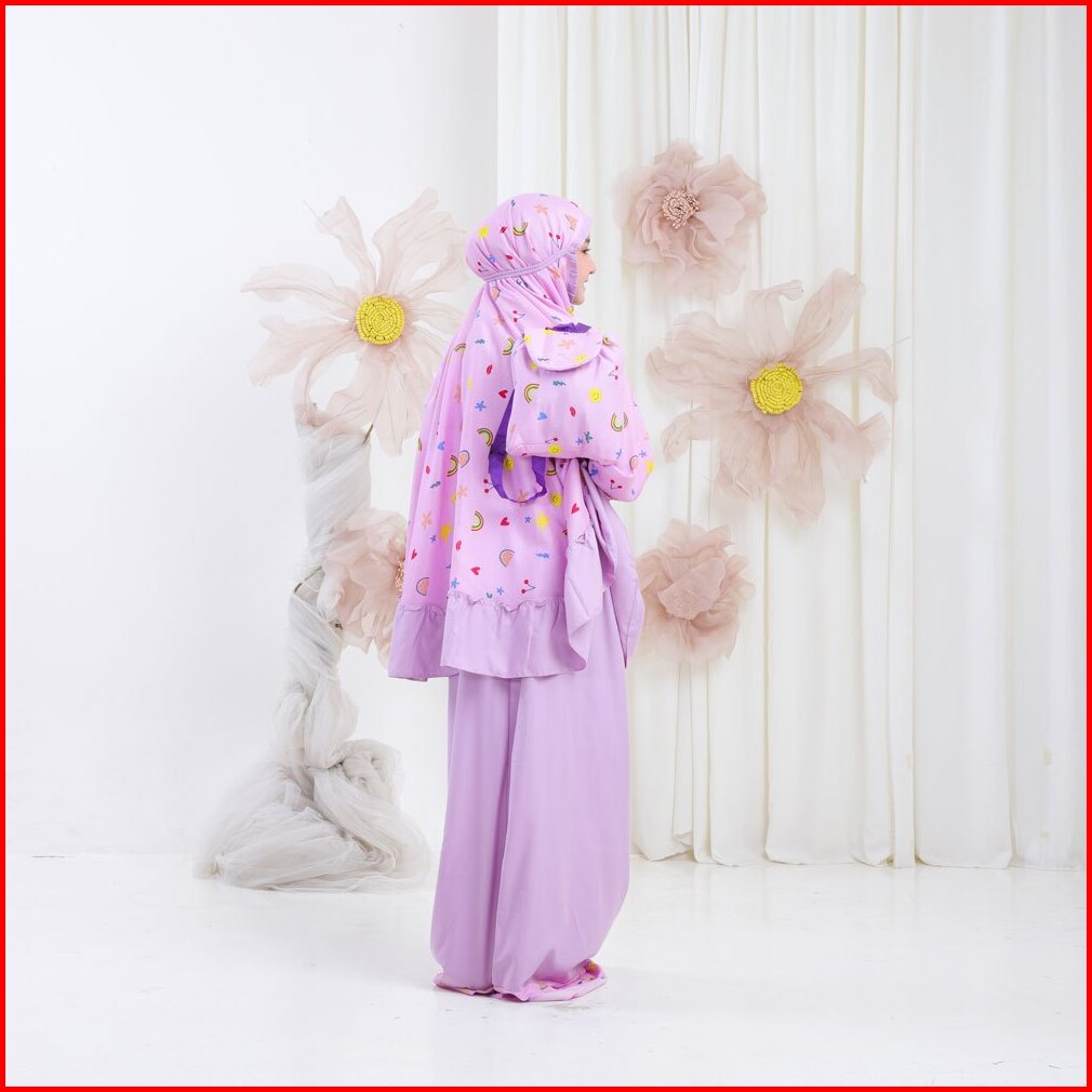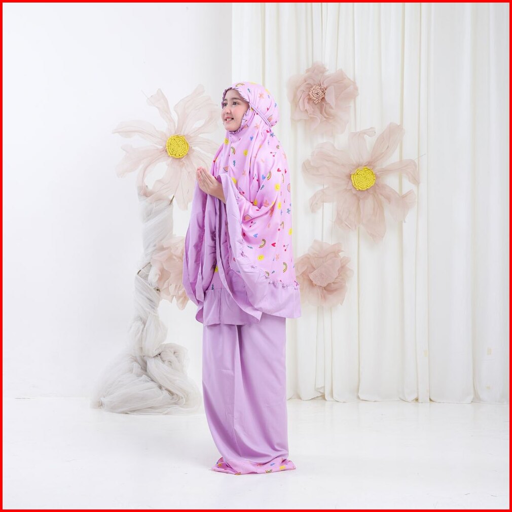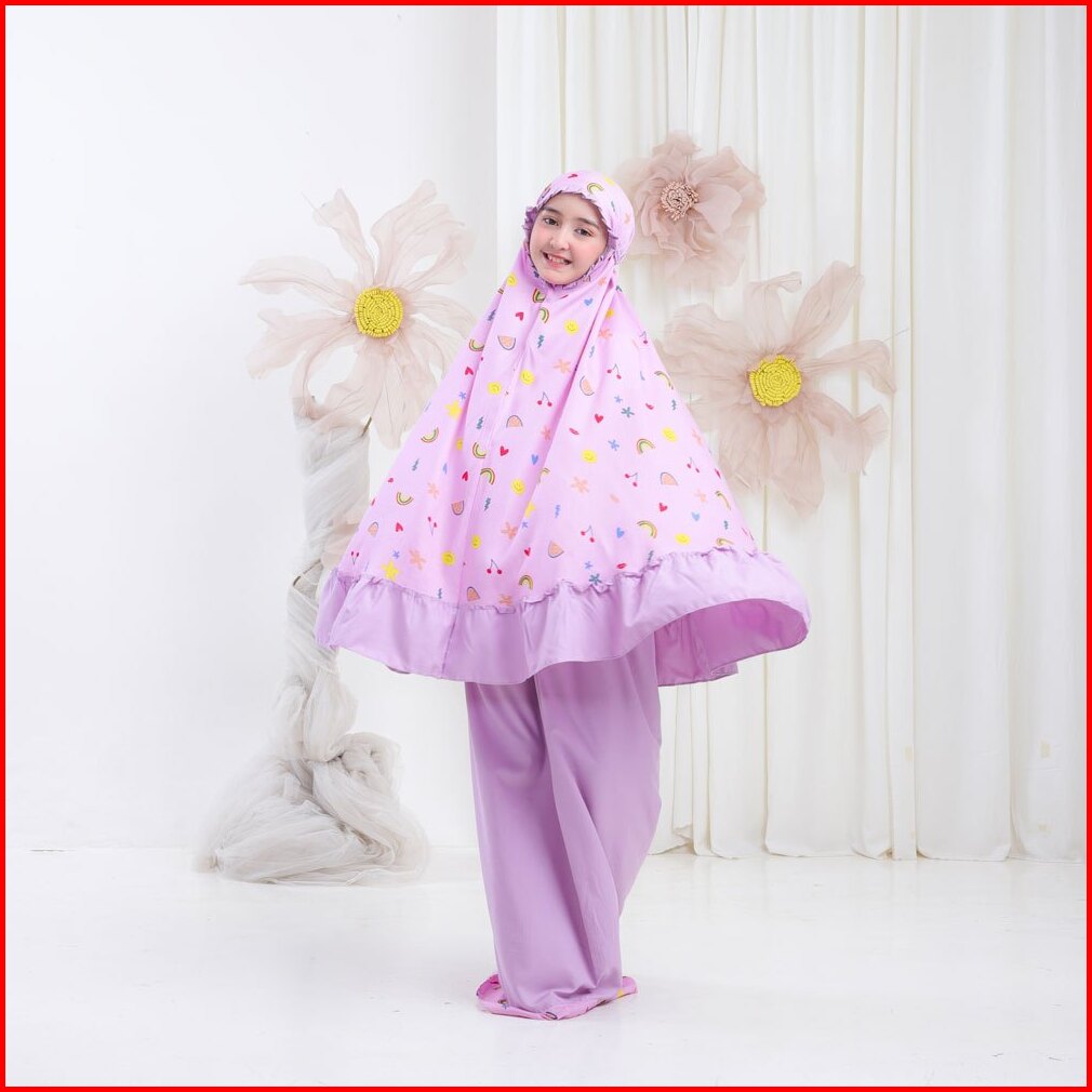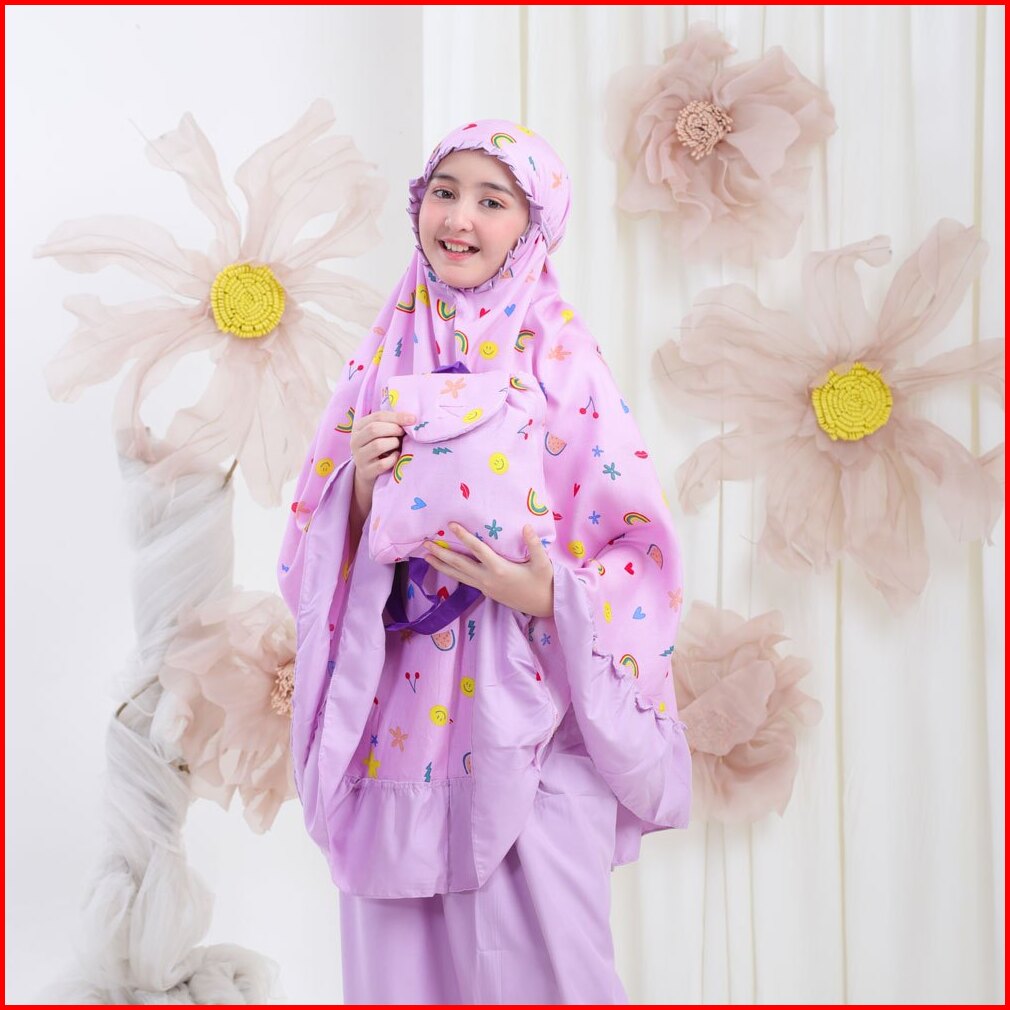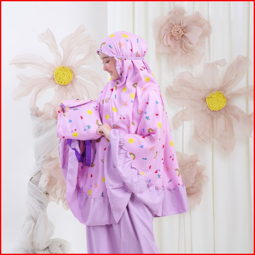 Mukena Anak Usia 3-10th Rayon Motif Premium Kombinasi Free Tas Ransel