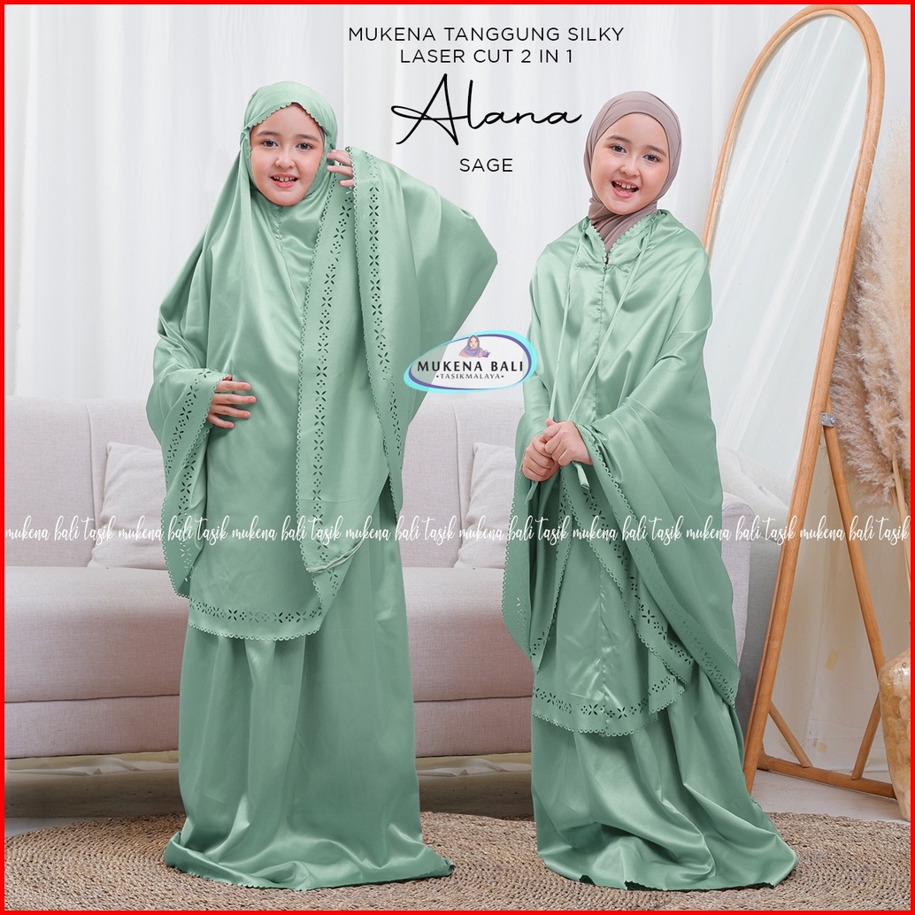 Mukena Bali Tasik - Mukena Anak Tanggung Silky Laser Cut 2in1 Alana