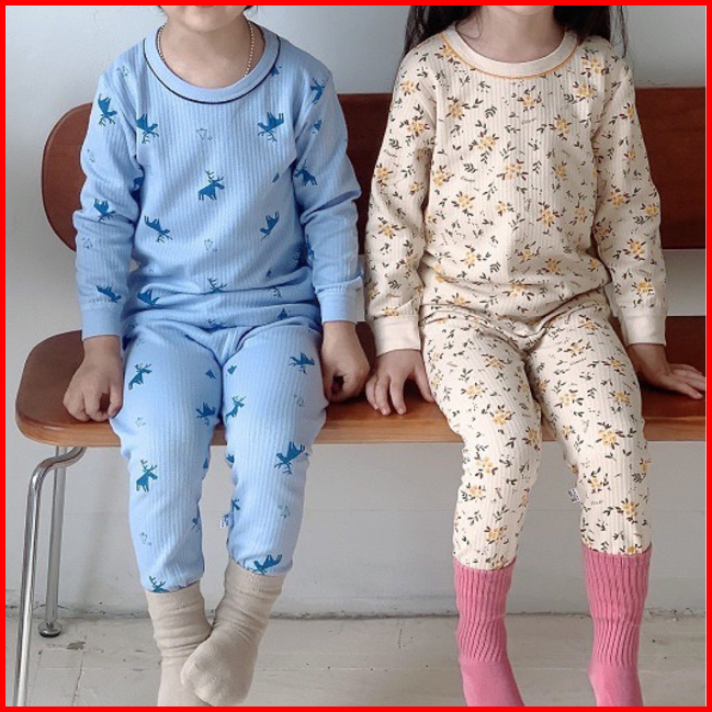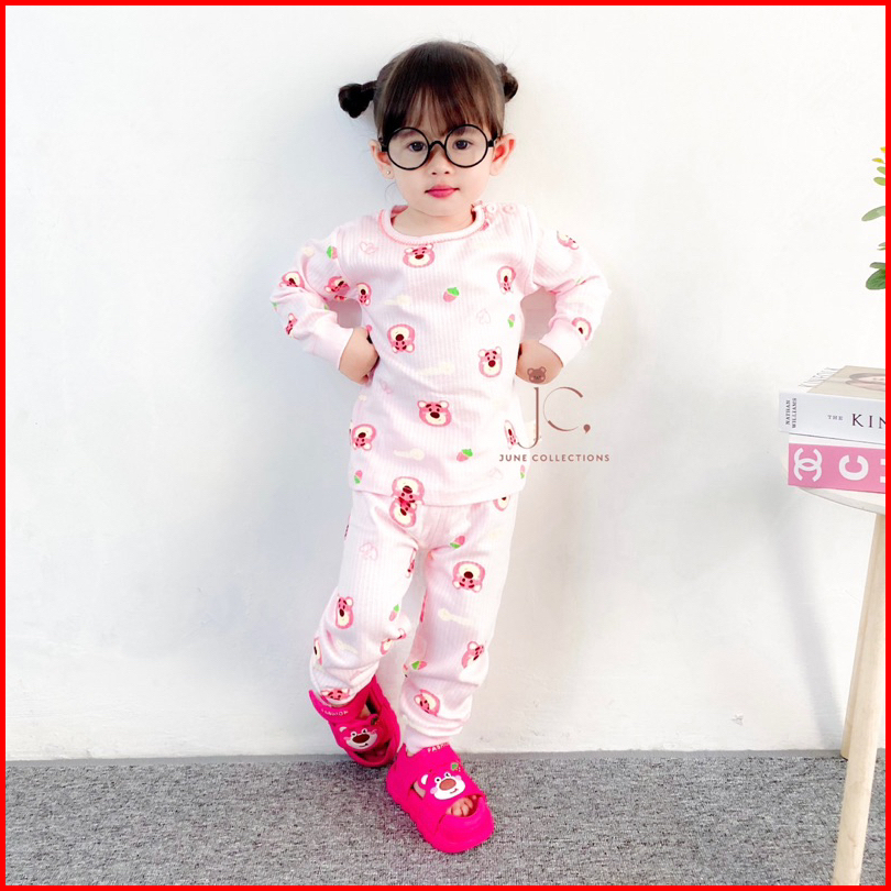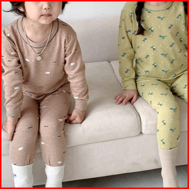 Junecollections Baju Tidur Anak Setelan Piyama Bayi Set Lengan Panjang Bahan Lembut Piyama Anak Motif Bear Beruang Dino