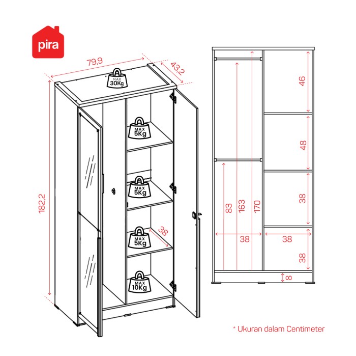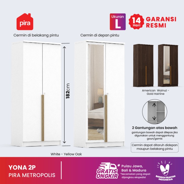 PIRA METROPOLIS - YONA AVA 2P LEMARI PAKAIAN 2 PINTU - WHITE - YEL O