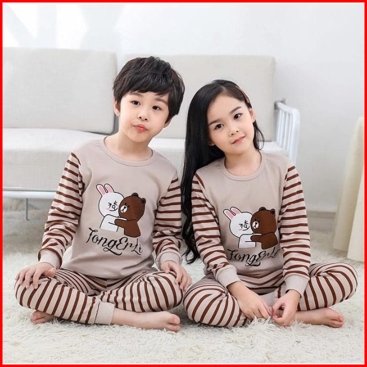 Baju Tidur Anak Pakaian Anak Perempuan Pakaian Anak Laki-laki Lengan Panjang Celana Panjang Bahan Kaos Buat Anak 1-9 Tah