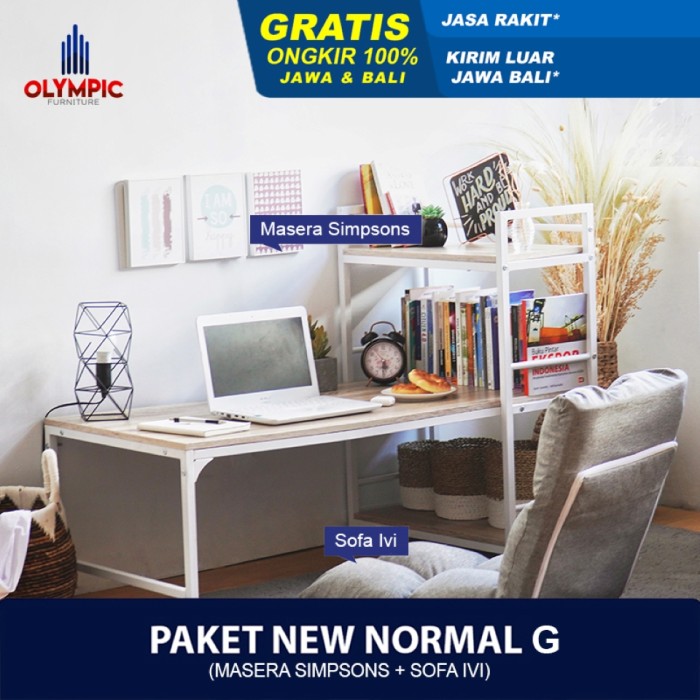 OLYMPIC SET MEJA BELAJAR + SOFA DUDUK MINIMALIS (MASERA SIMPSONS+IVI) - PINK SALMON