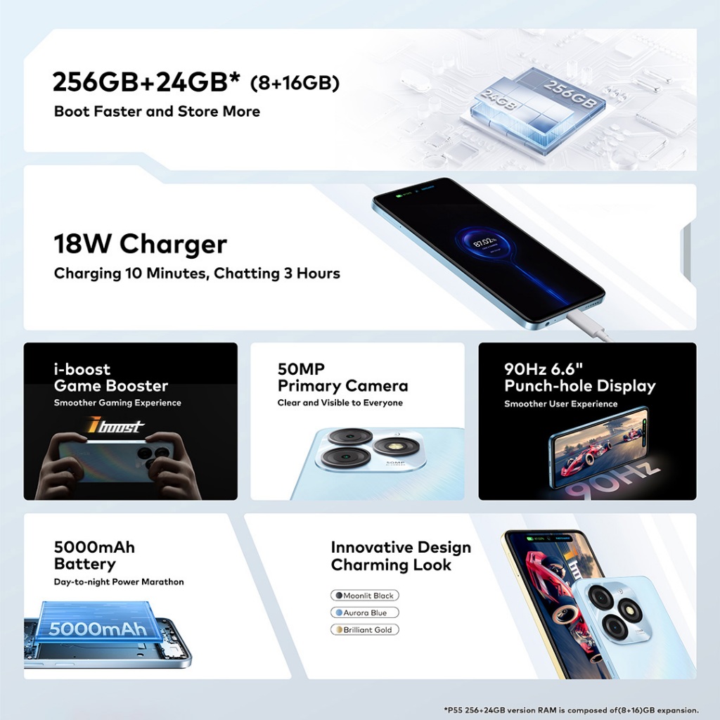 ITEL P55 NFC RAM 8 + 128GB / 256GB - LAYAR 90HZ PUNCH H0LE - UFS MEMORY - 50 MP KAMERA UTAMA