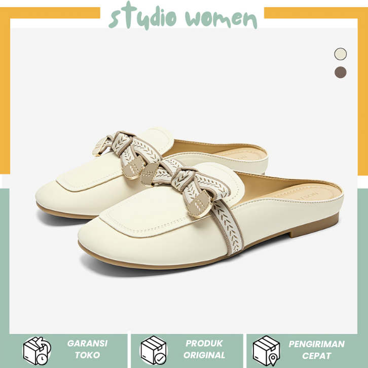 BOSTANTEN Women Flat Shoes Mueller Sandal Mules Sepatu Mules Wanita