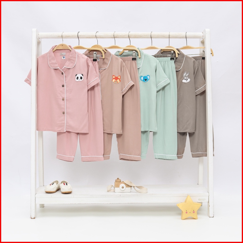 Peachbello Set Pajamas Anak Lengan Pendek Bahan Twill Usia 1-10th