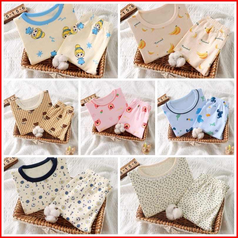 Junecollections Baju Tidur Anak Setelan Piyama Bayi Set Lengan Panjang Bahan Lembut Piyama Anak Motif Bear Beruang Dino
