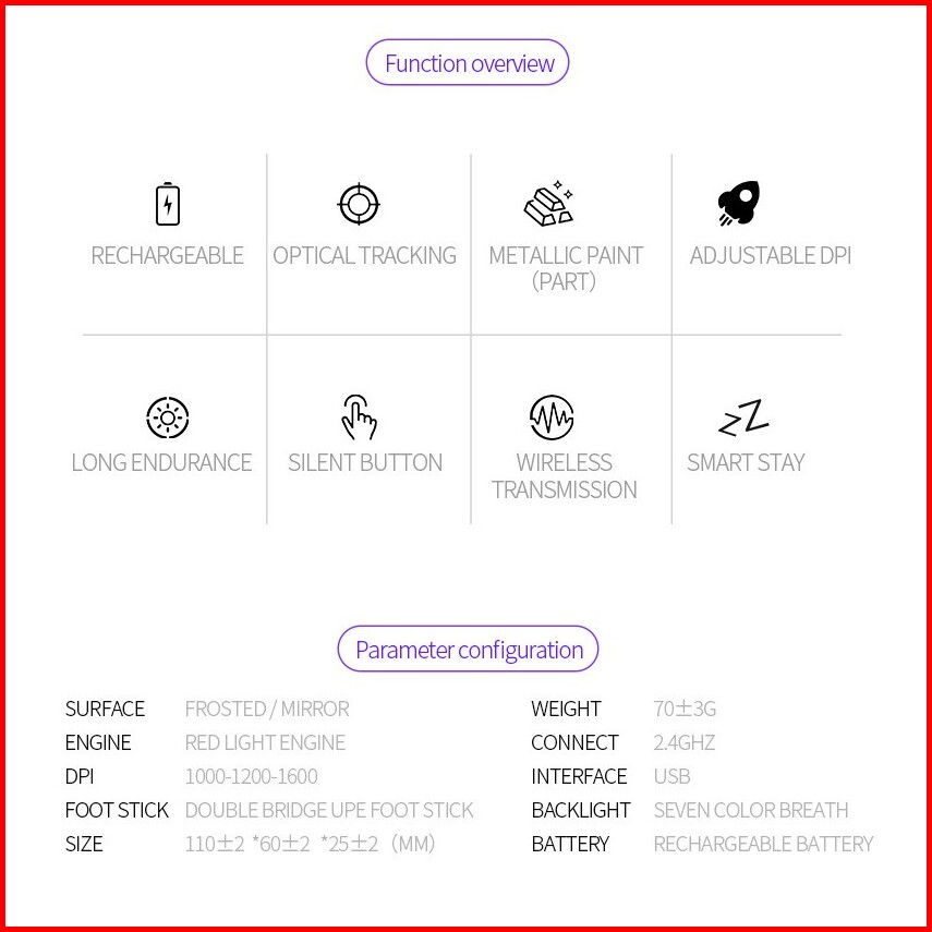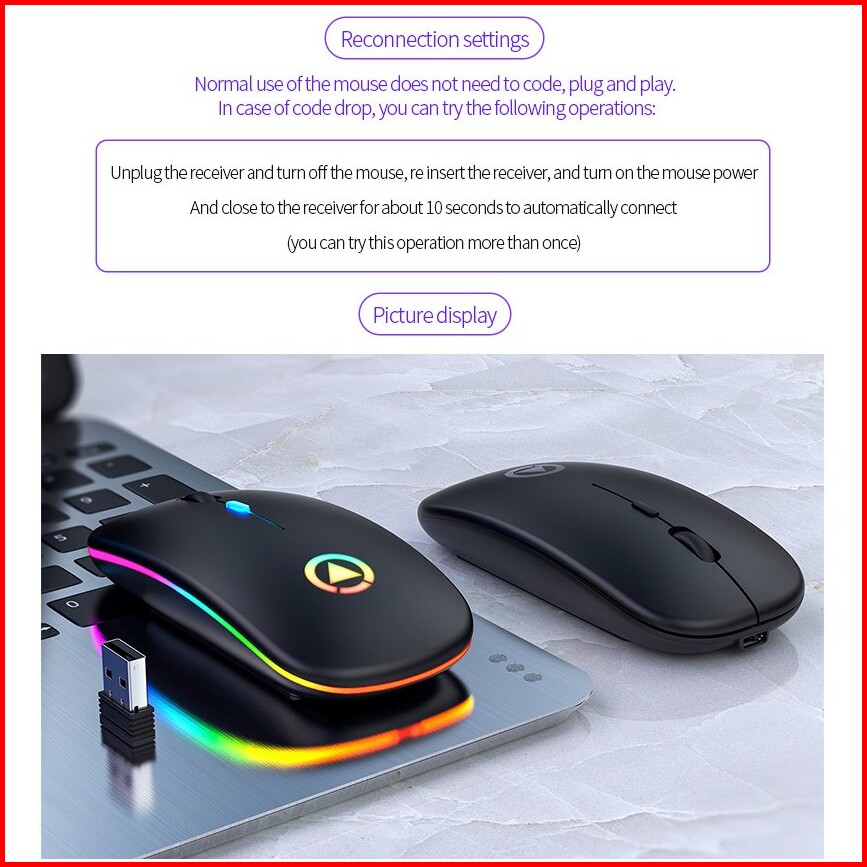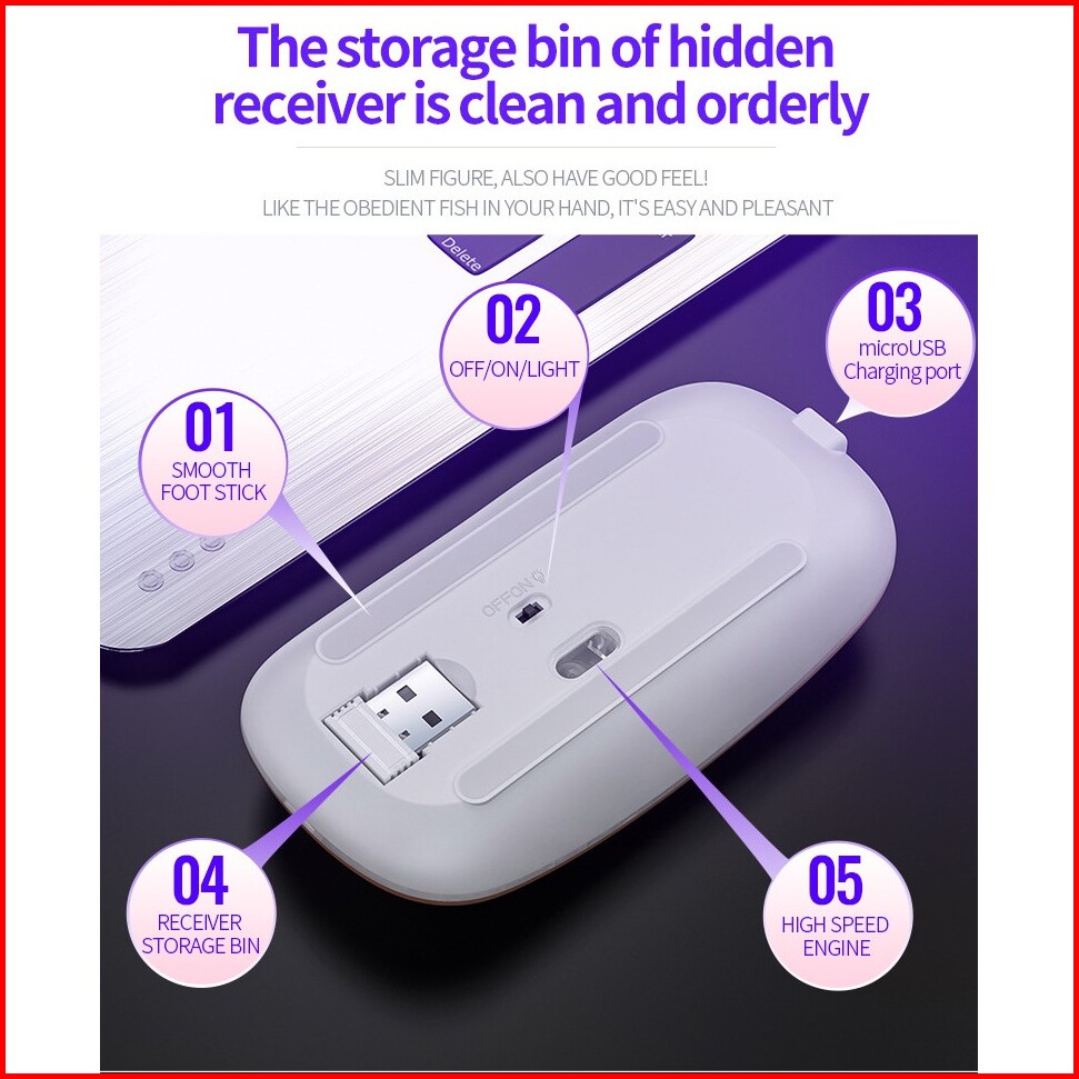 Ciji Mouse Wireless Silent 1600dpi Rgb Led Backlit Rechargeable Gaming Mouse Ultra Slim Ergonomic