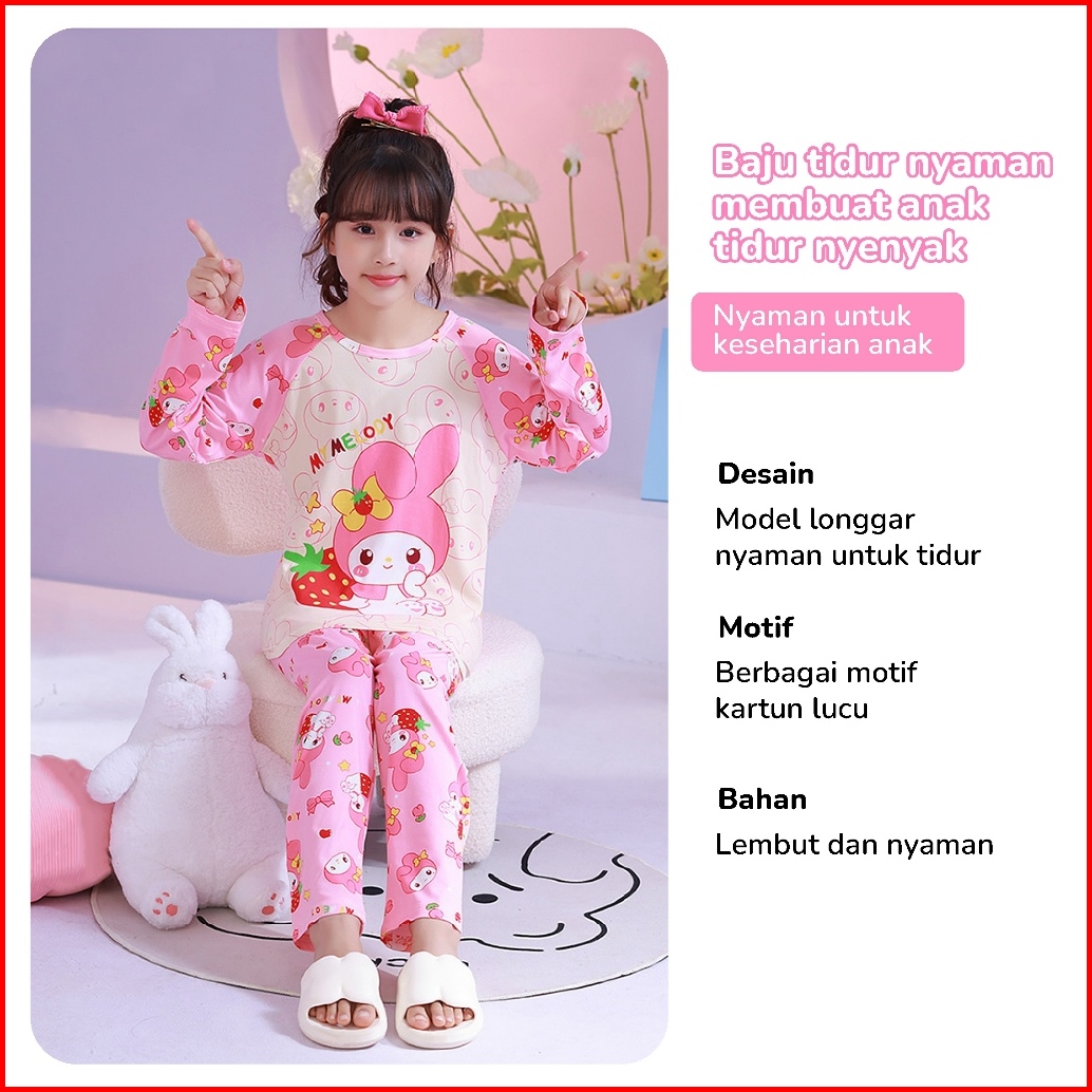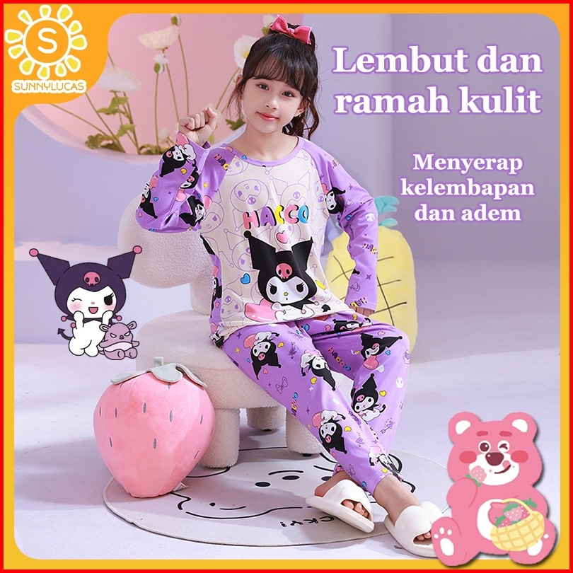 Sunny.lucas Setelan Baju Tidur Lengan Panjang Untuk Anak Perempuan Laki Laki Set Piyama Anak Print Kartun Baju Tidur Ana