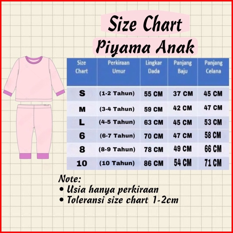Setelan Baju Tidur Anak Lengan Panjang Bahan Premium