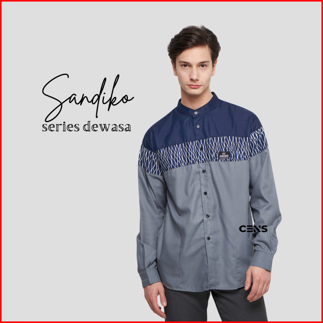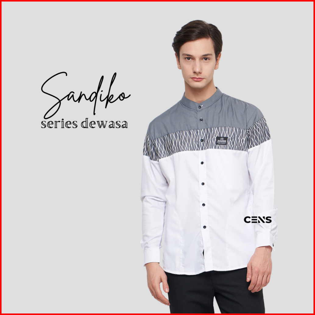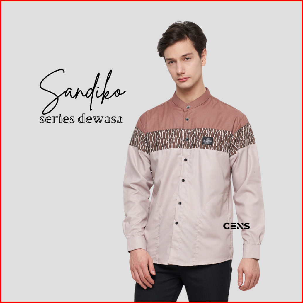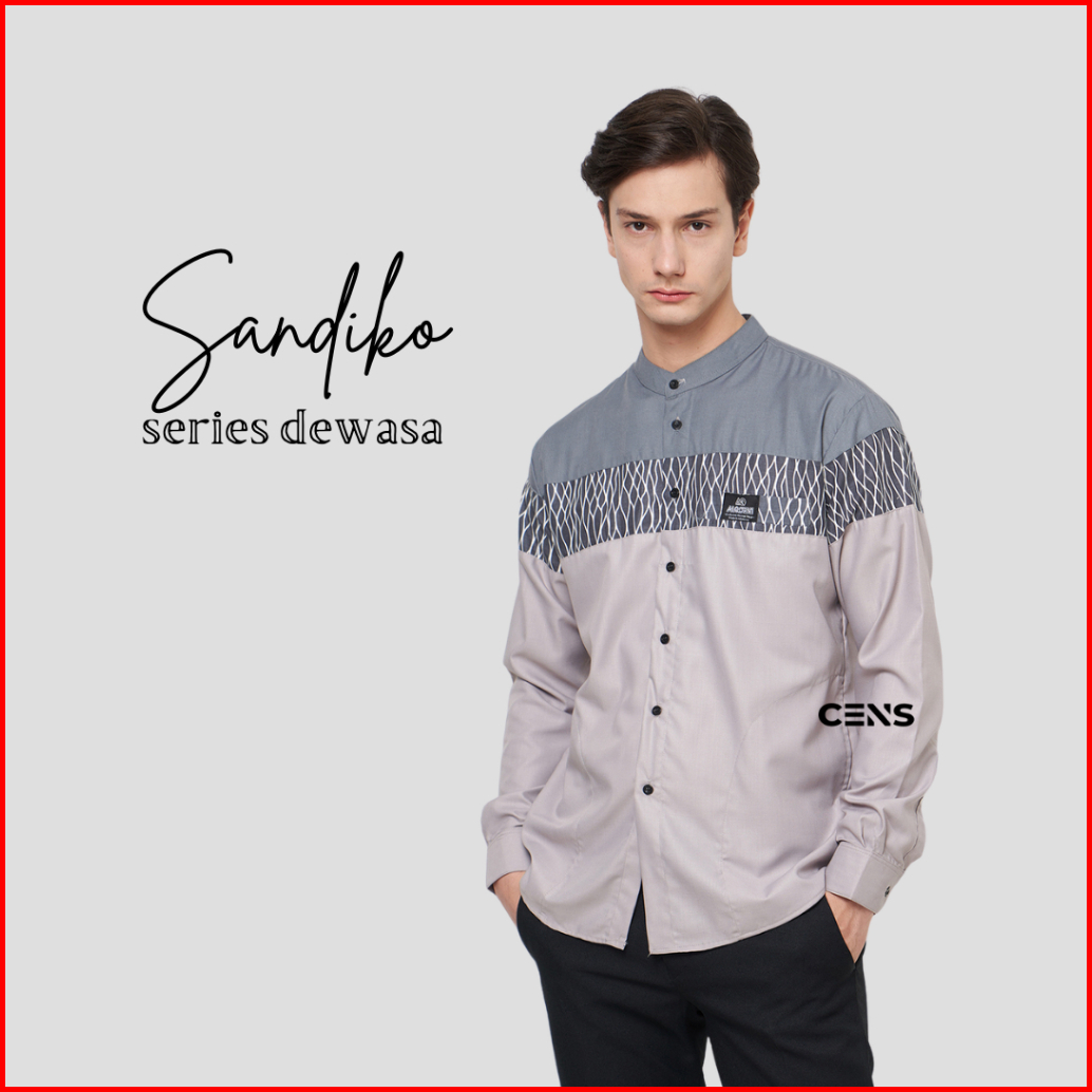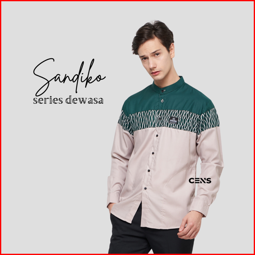 Cens - Baju Koko Pria Lengan Panjang Motif Kombinasi Batik Sandiko