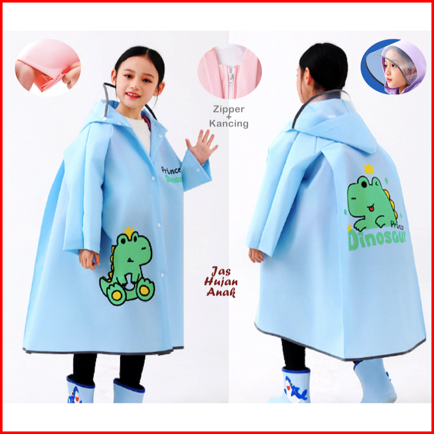 Zipper Jas Hujan Sor Rabbit Prince Dinosaur Model Resleting Dan Kancing Ada Ruang Ransel Kids Raincoat