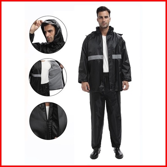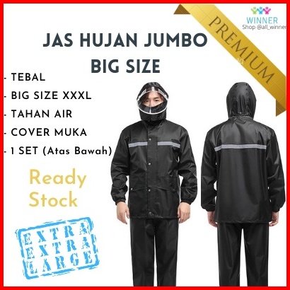 Jas Hujan Jumbo Big Size Xxl Tebal Pria Dewasa Topi Murah Hoodie Set Premium Tebal Kuat Bahan Pvc Nilon Interlining Fabr