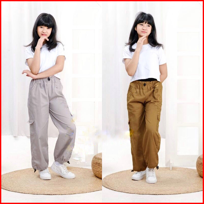 Celana Cargo Anak Perempuan Korean Style 1-13 Tahun Katun Drill