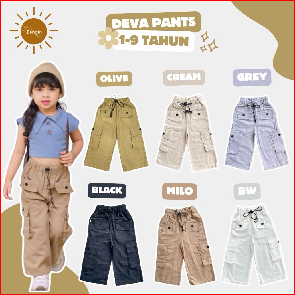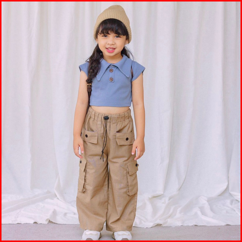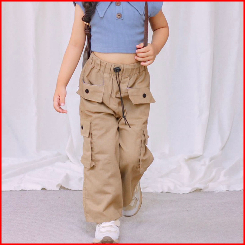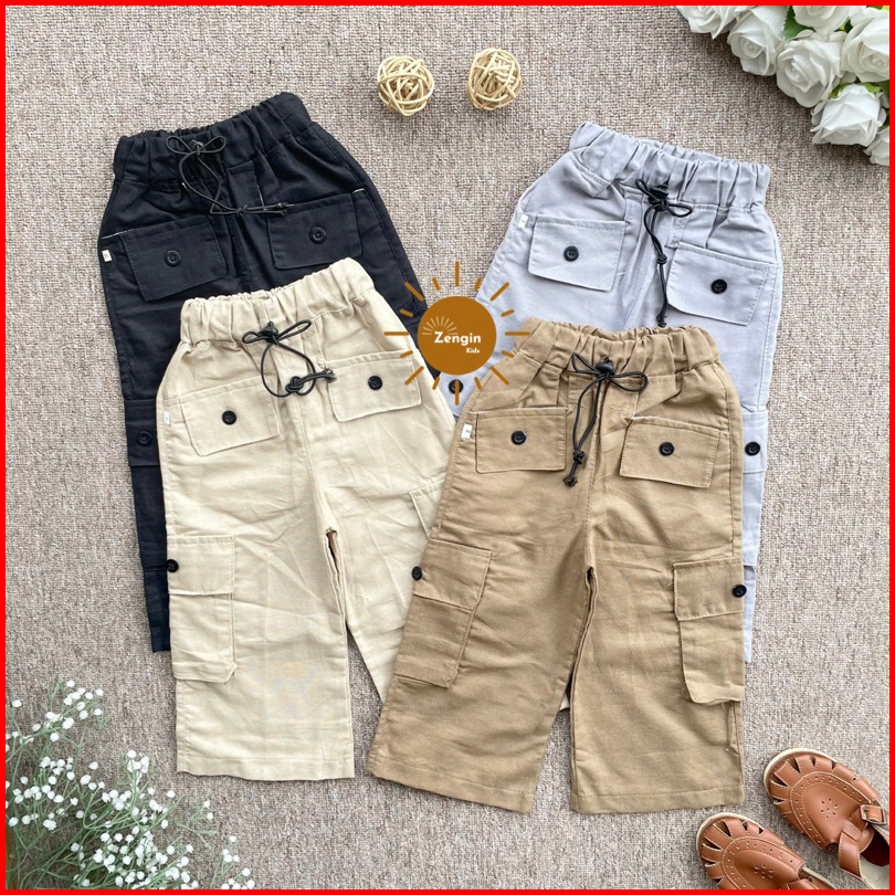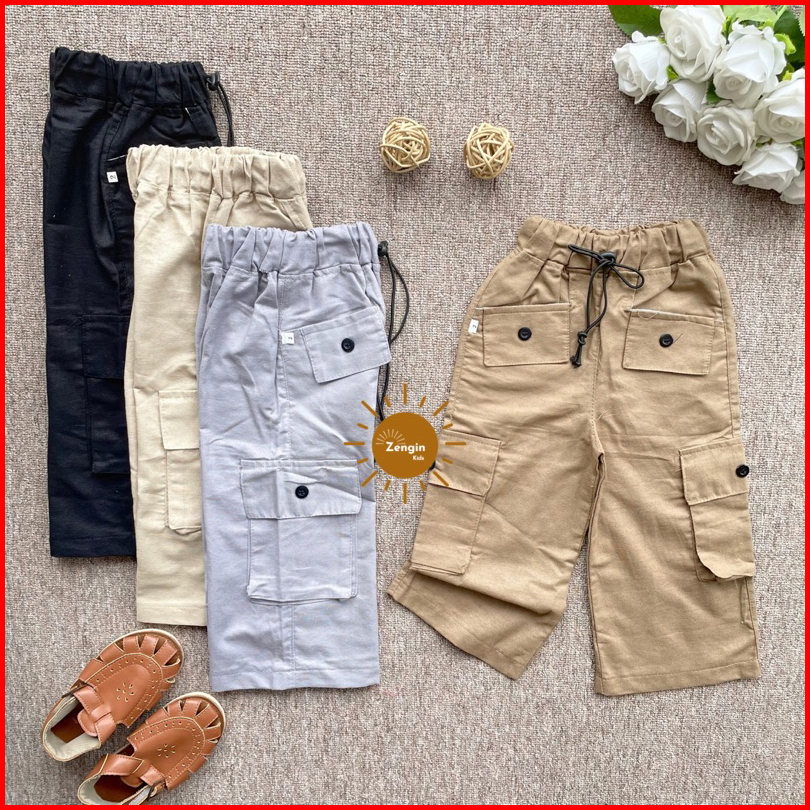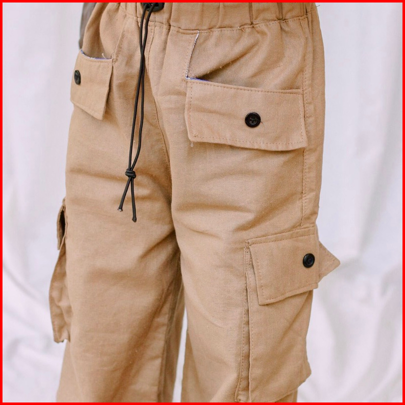 1-9th Celana Anak Deva Cargo Kancing Linen Adem