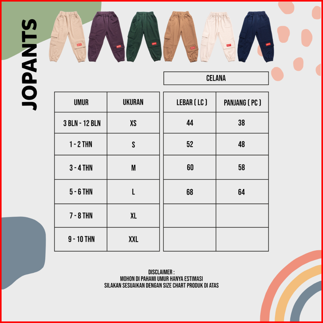 Celana Panjang Joger Cargo Anak Cowok Cewek 1-7 Tahun Untuk Main Tidur