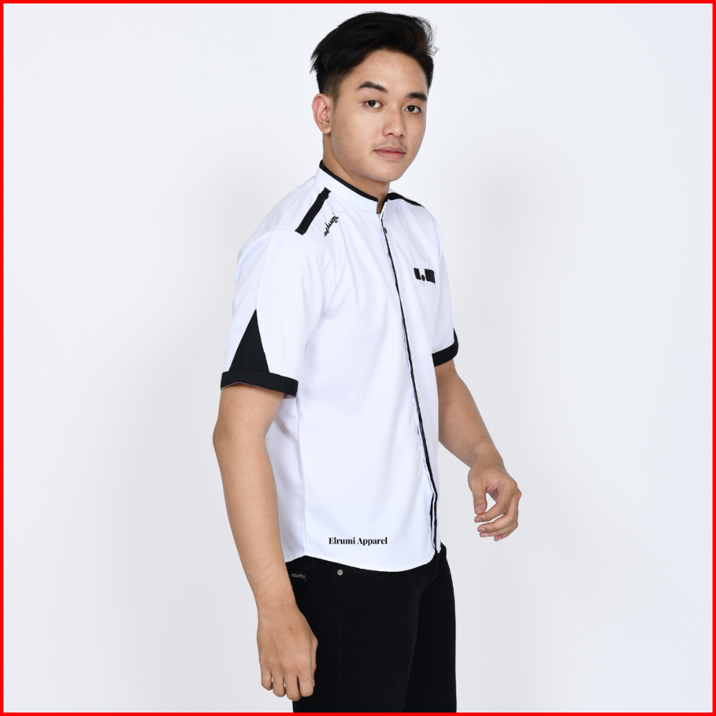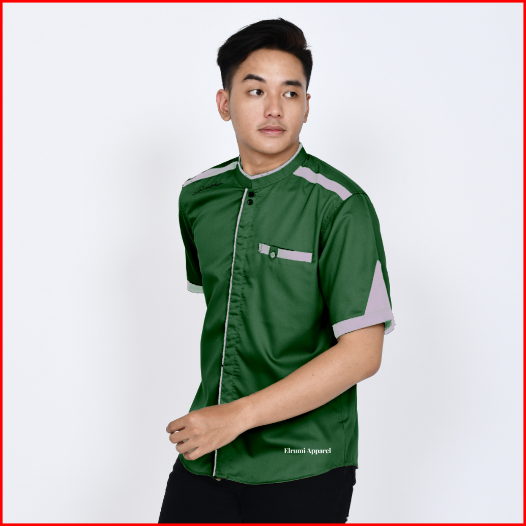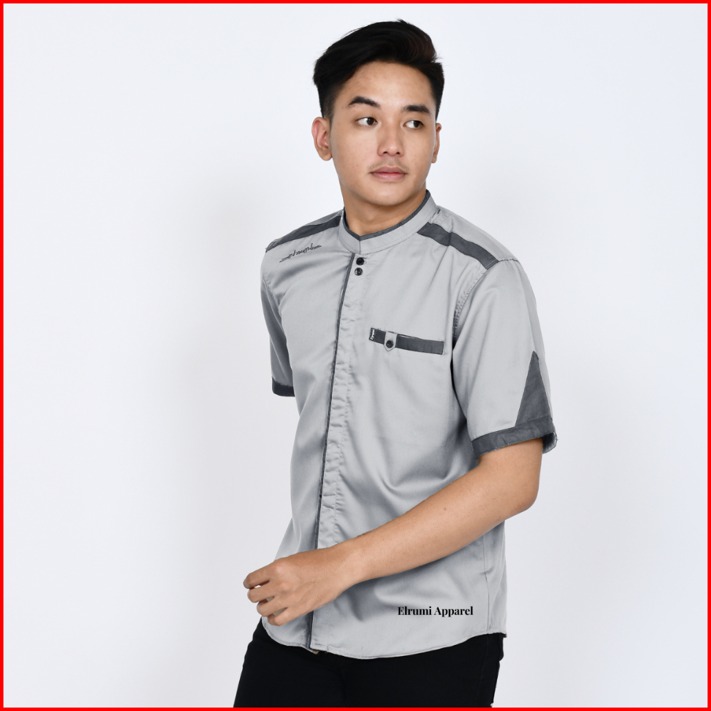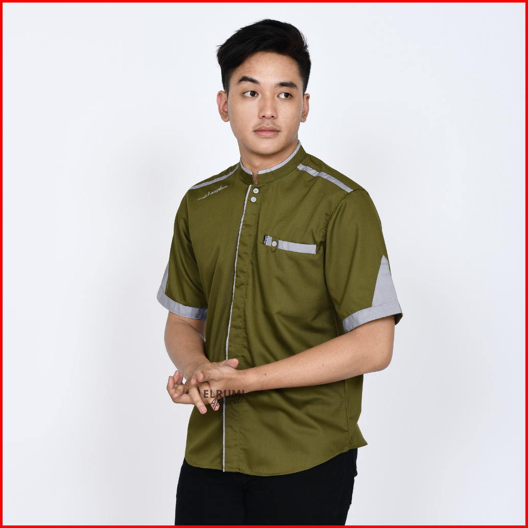 Baju Koko Pria Dewasa Lengan Pendek Elrumi Muslim Kombinasi Bordir Warna Coklat Motif Yisunsin