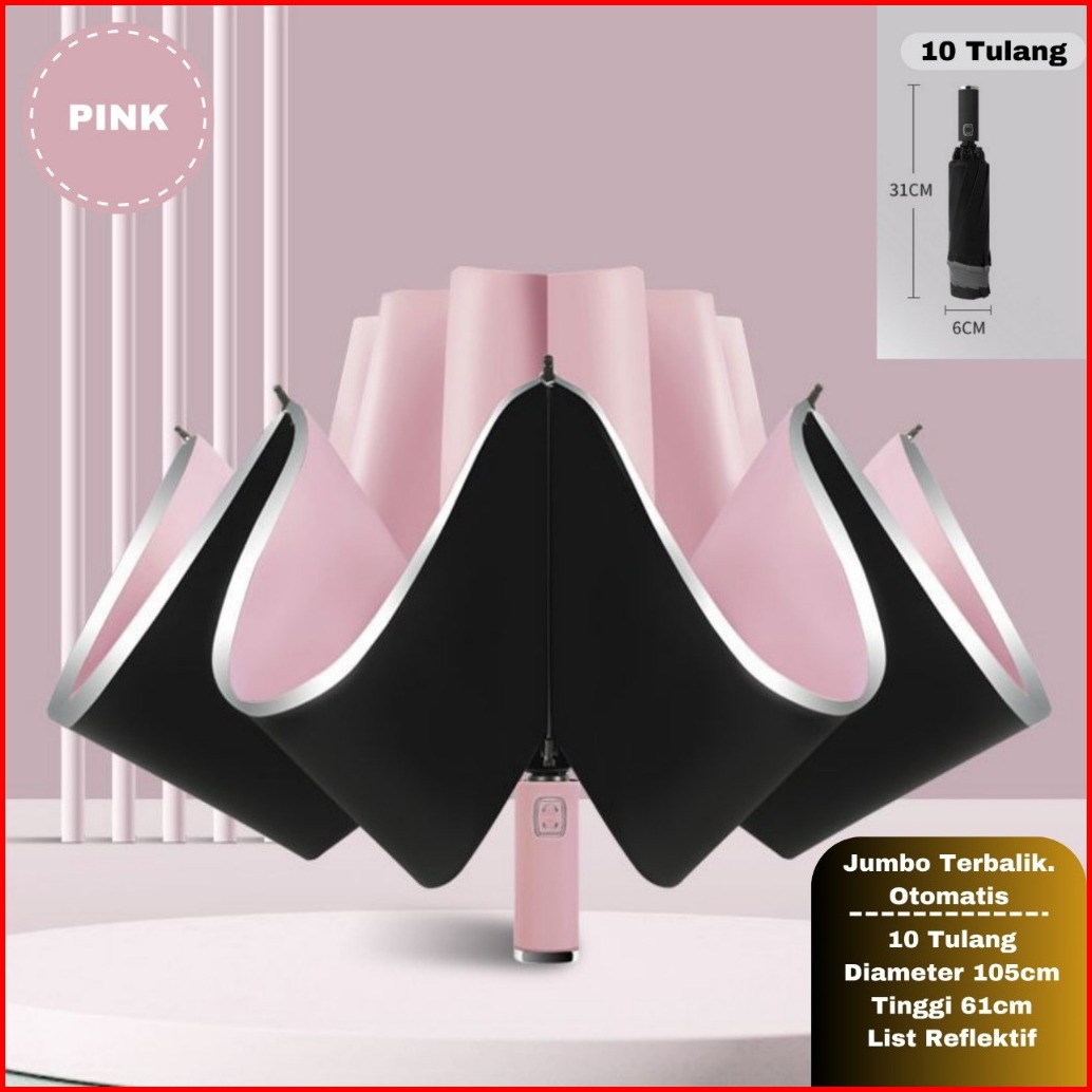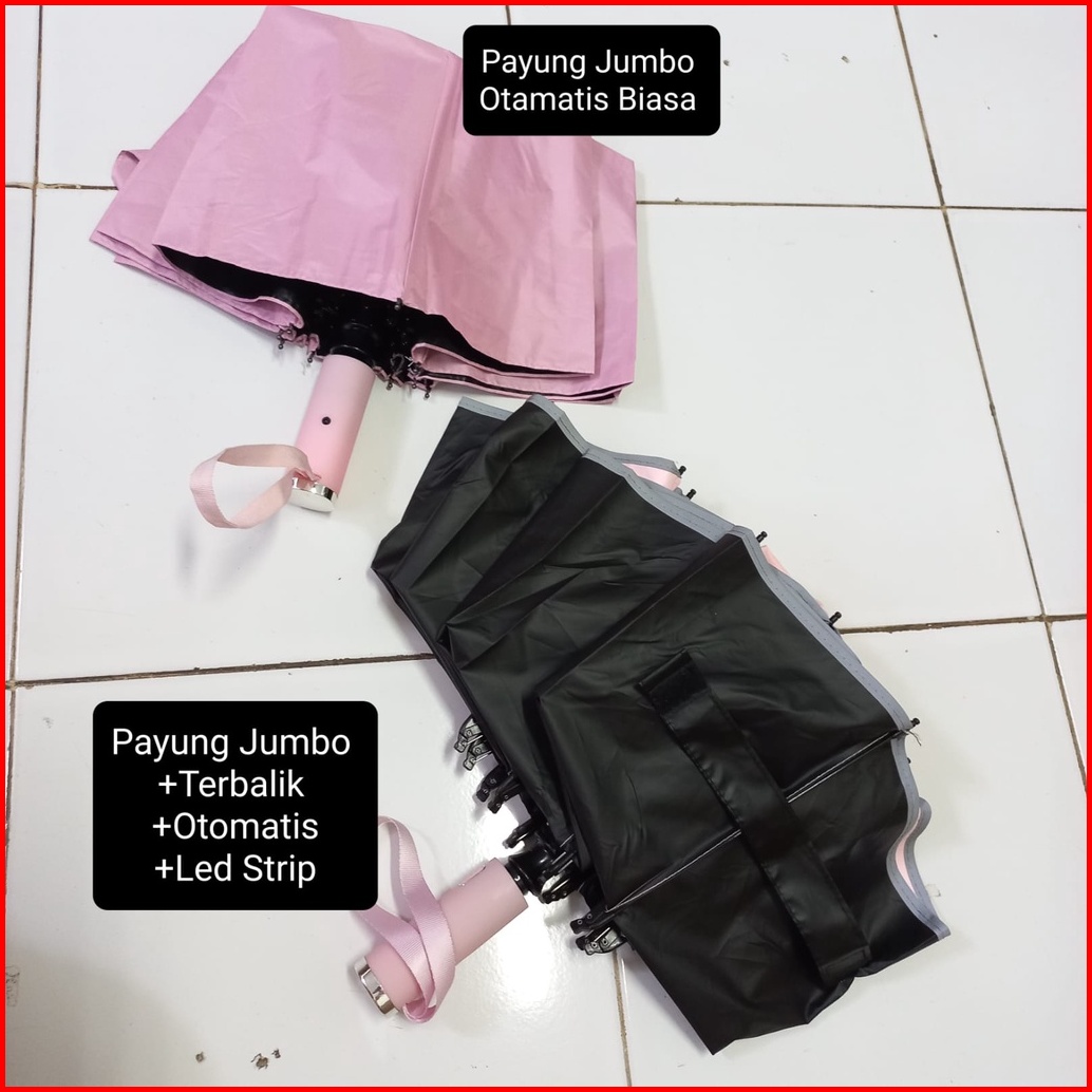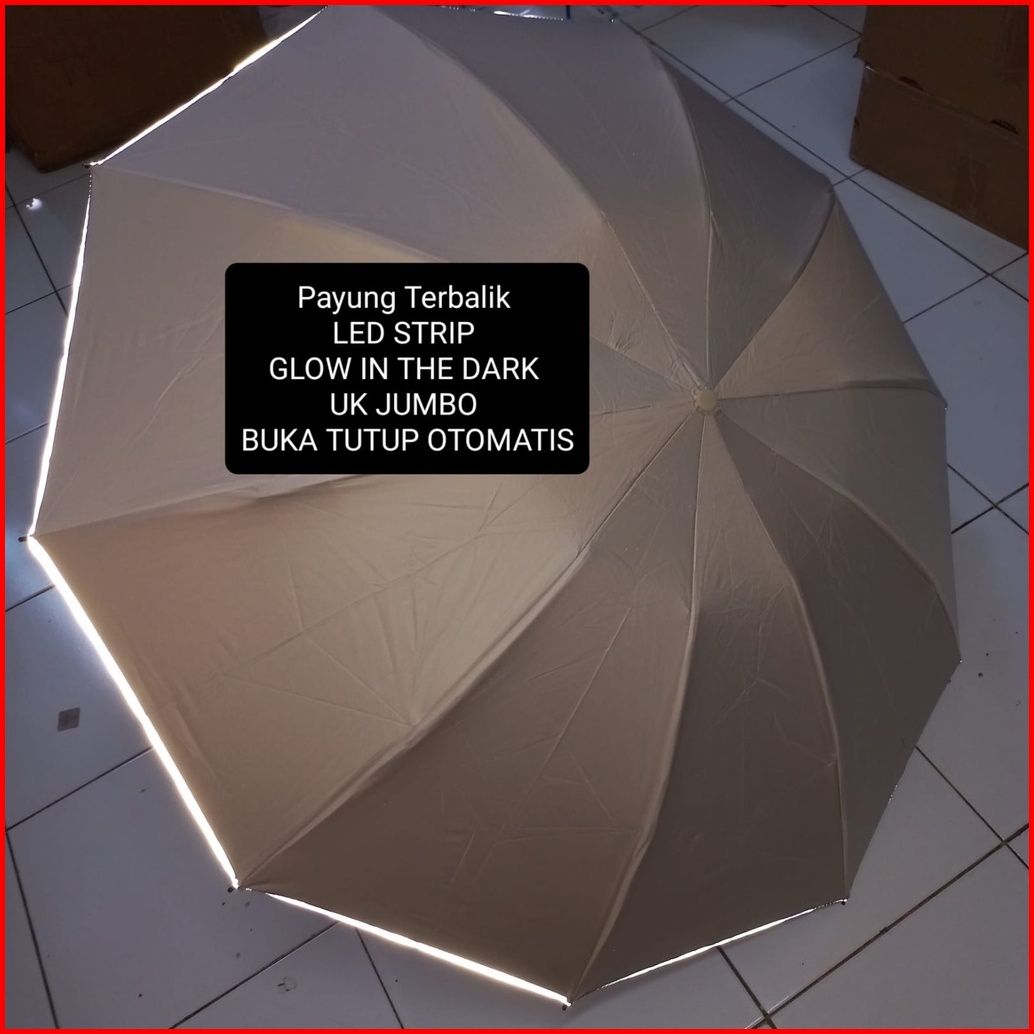 Payung Lipat Jumbo Premium Terbalik Anti Uv Sinar Matahari Led Strip