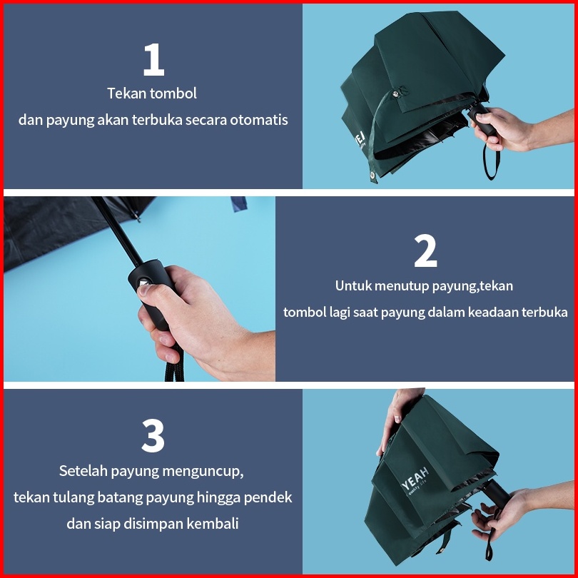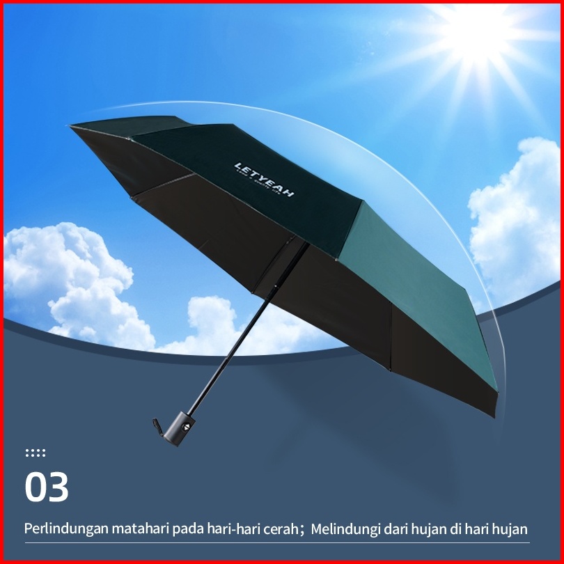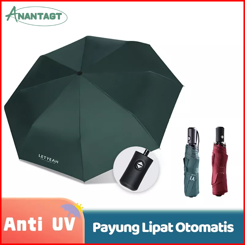 Letyeah Anantagt Payung Lipat Murah Polos Hijau Premium Payung Otomatis Buka Anti Uv Hujan Atau Panas