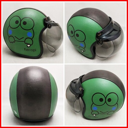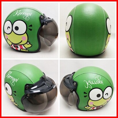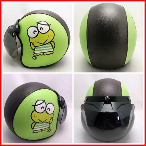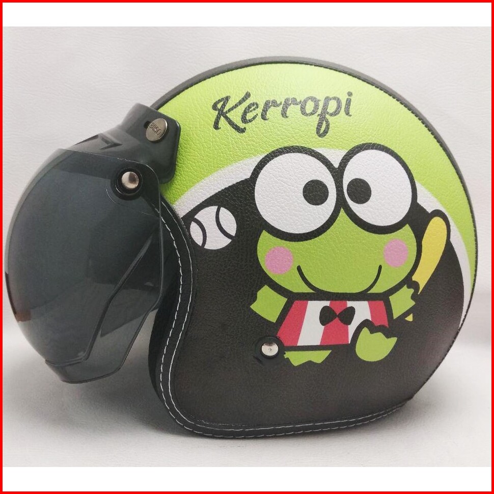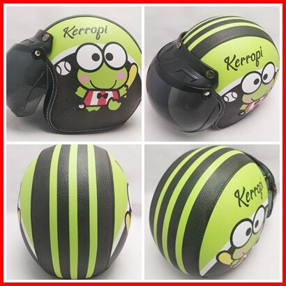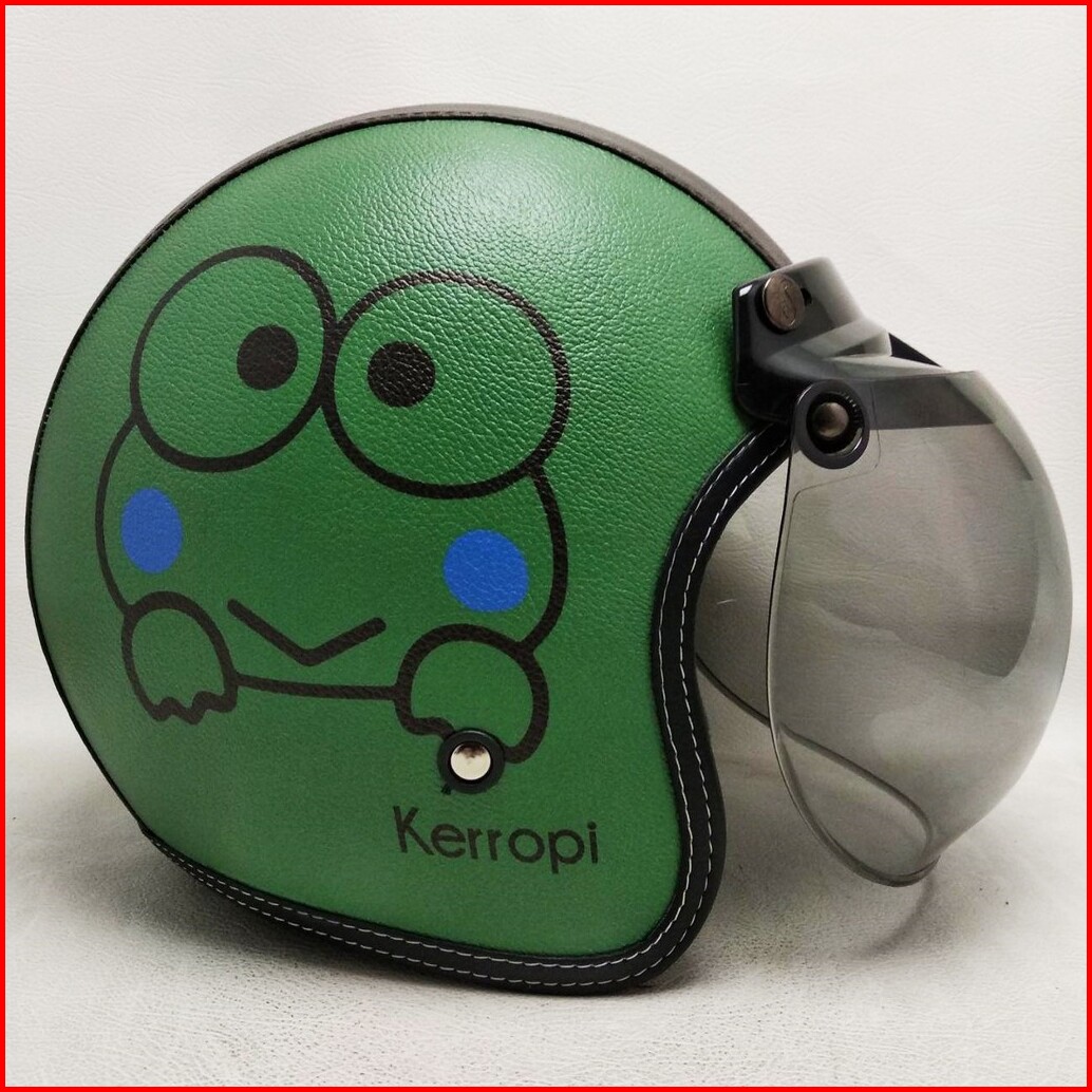 Helm Retro Bogo Kulit Motif Keroppi Series Halfface Kaca Bubble Helm Kerropi Keropi