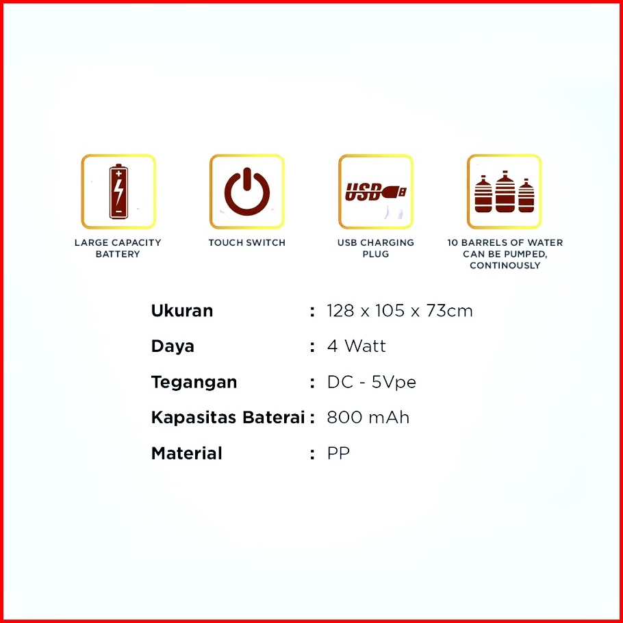 Finito Pompa Galon Elektrik Dispenser Air Minum Gallon Rechargerable Pompa Galon Indikator Lampu