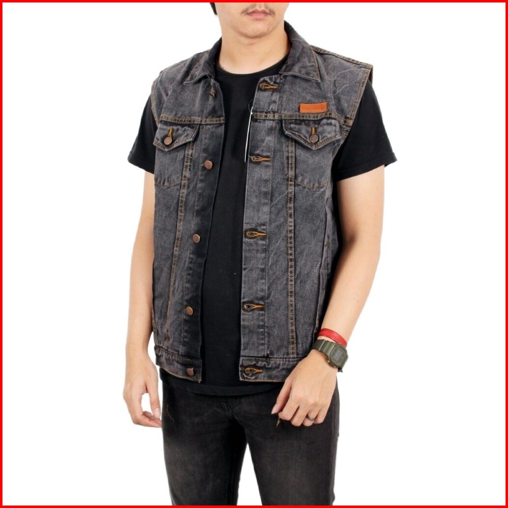 Sixteen - Rompi Jeans Pria Big Size Rompi Motor Klasik Denim Sandwash Gray Black Flower Country