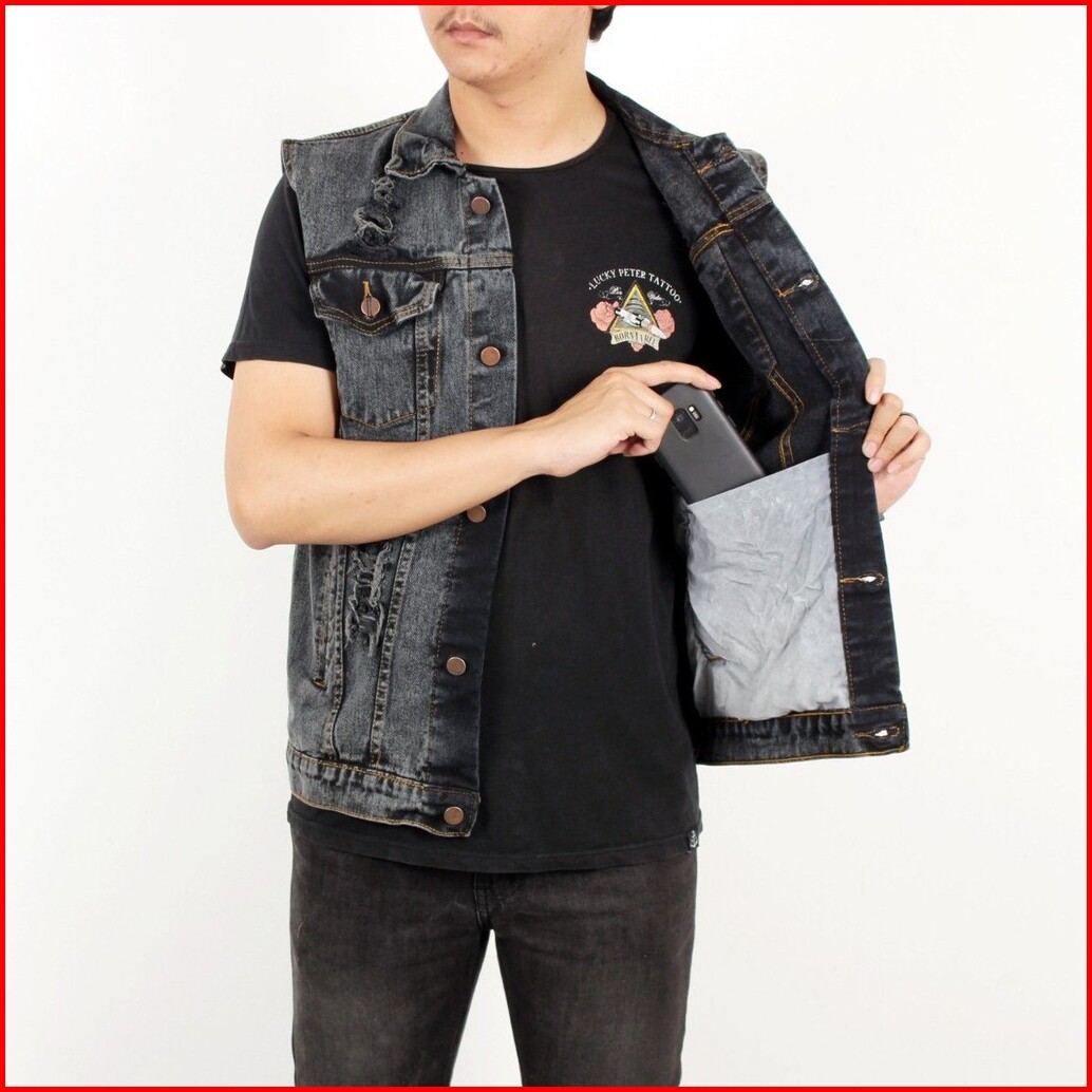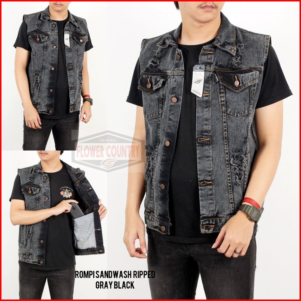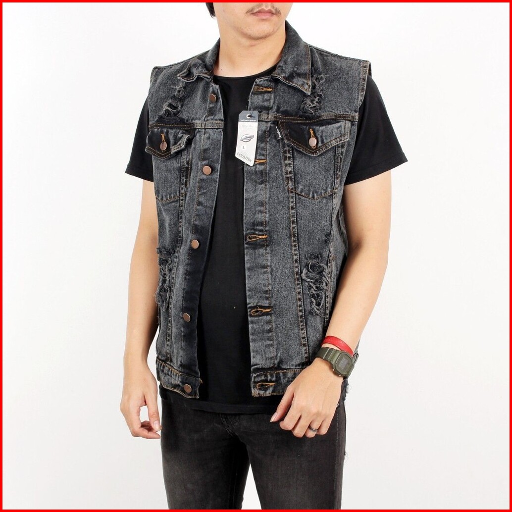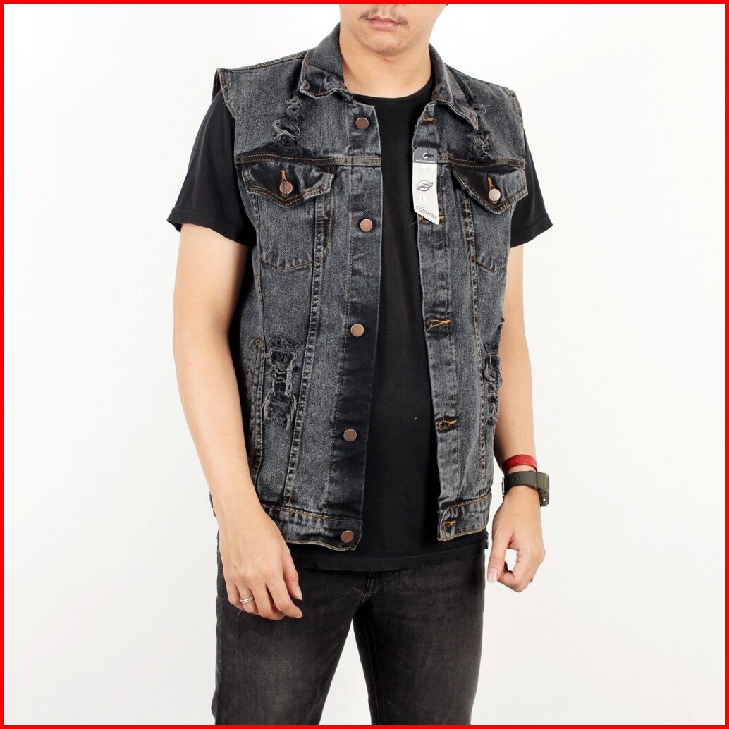 Bstr Jaket Pria Rompi Sobek Grey Sanwash.jaket Rompi Motor Bikers.jaket Rompi Ripped Jeans