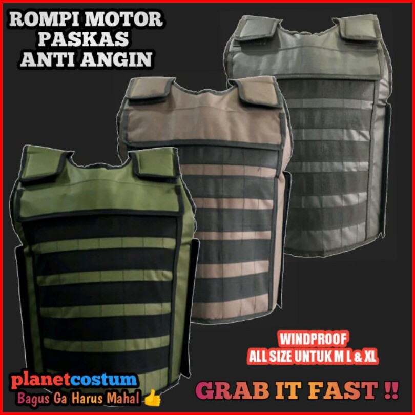Pcrm13 Rompi Motor Anti Angin Army Look Bikers Touring Adventure Body Protector Dada Punggung Paskas