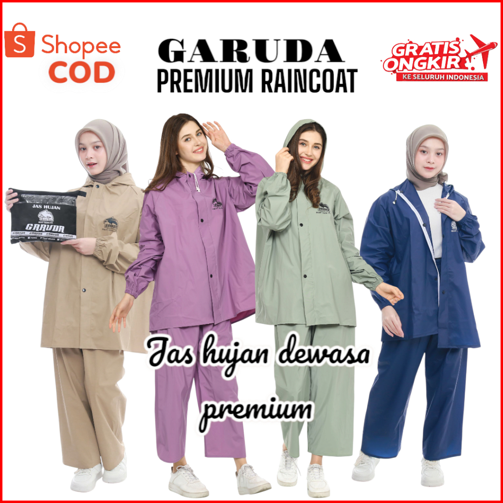 Jas Hujan Premium Garuda Setelan Dewasa Kuat Elastis Tahan Lama Pria Wanita Bahan Pvc