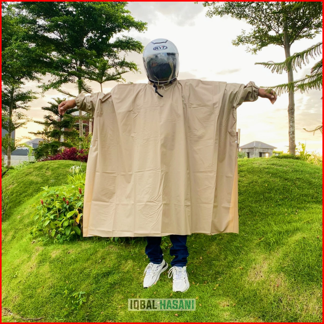 Jas Hujan Ponco Kelelawar Polos Lengan Pria Wanita Bahan Tebal Lentur Dan Elastis
