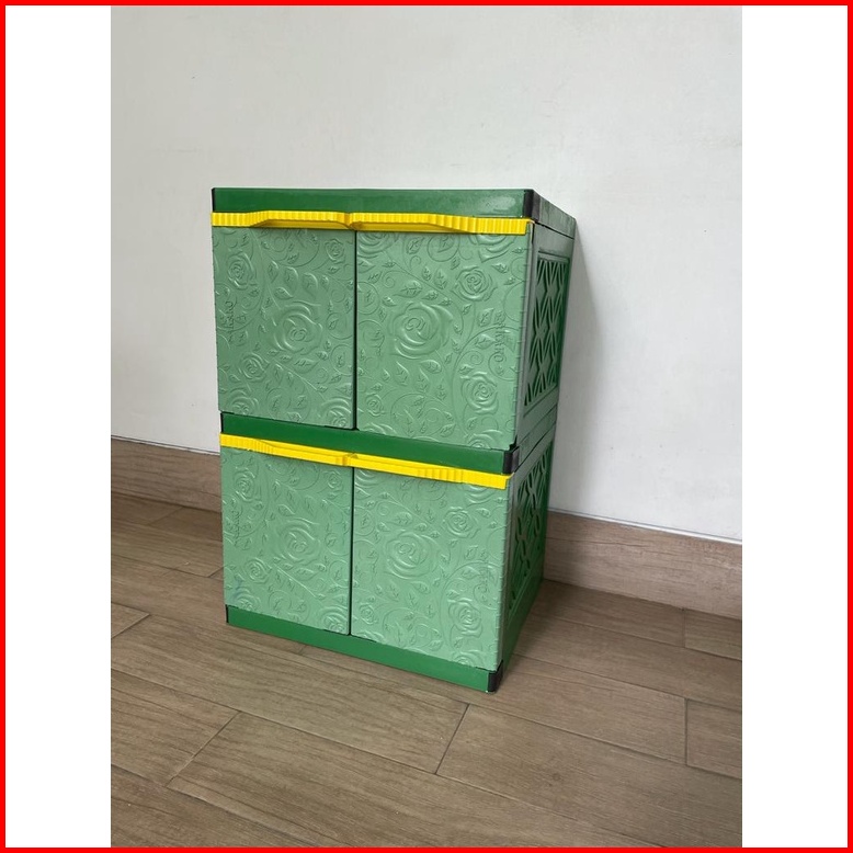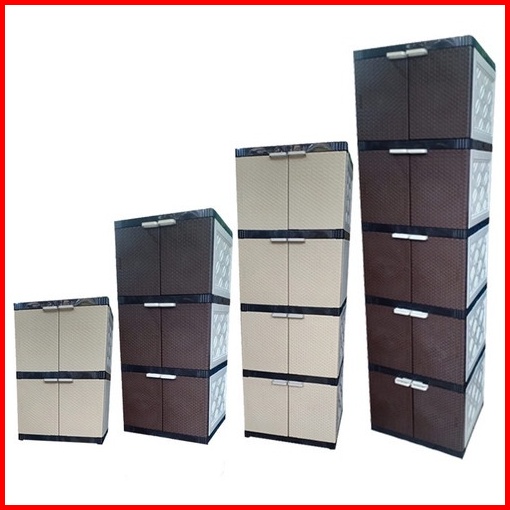 Lemari Plastik Minimalis Susun 2 Akako Flora Rotan - Artha Kaca Cermin Murah