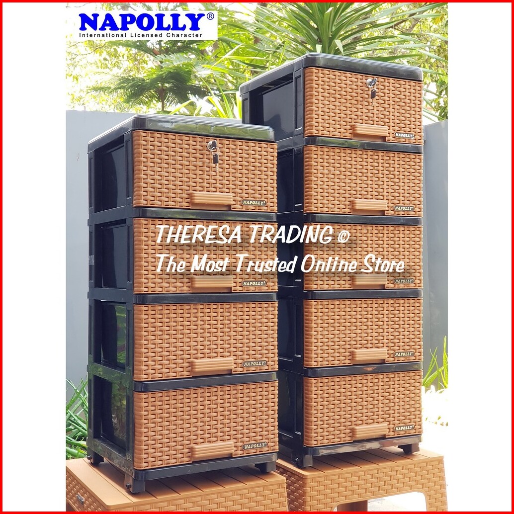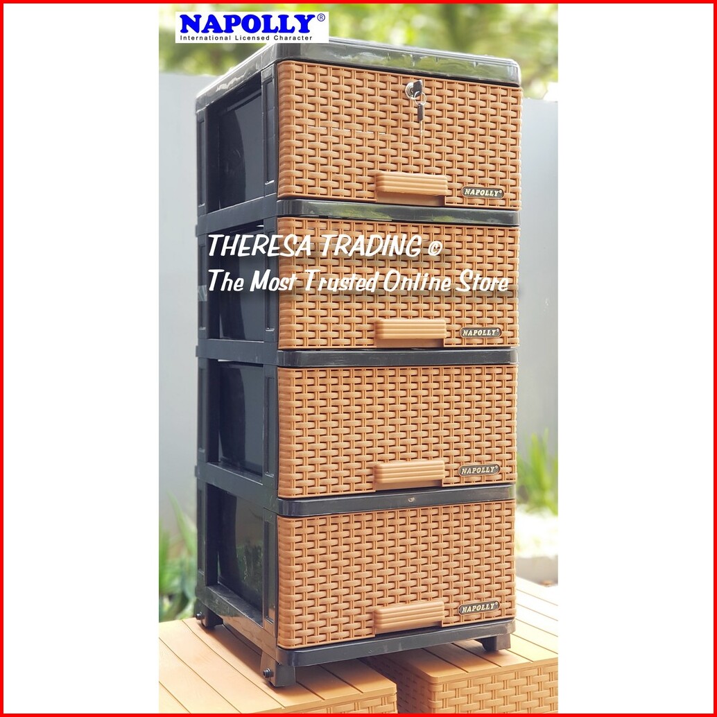 Lemari Plastik Napolly Contac Susun 4 Motif Rotan Dilengkapi Kunci Laci 4 Roda