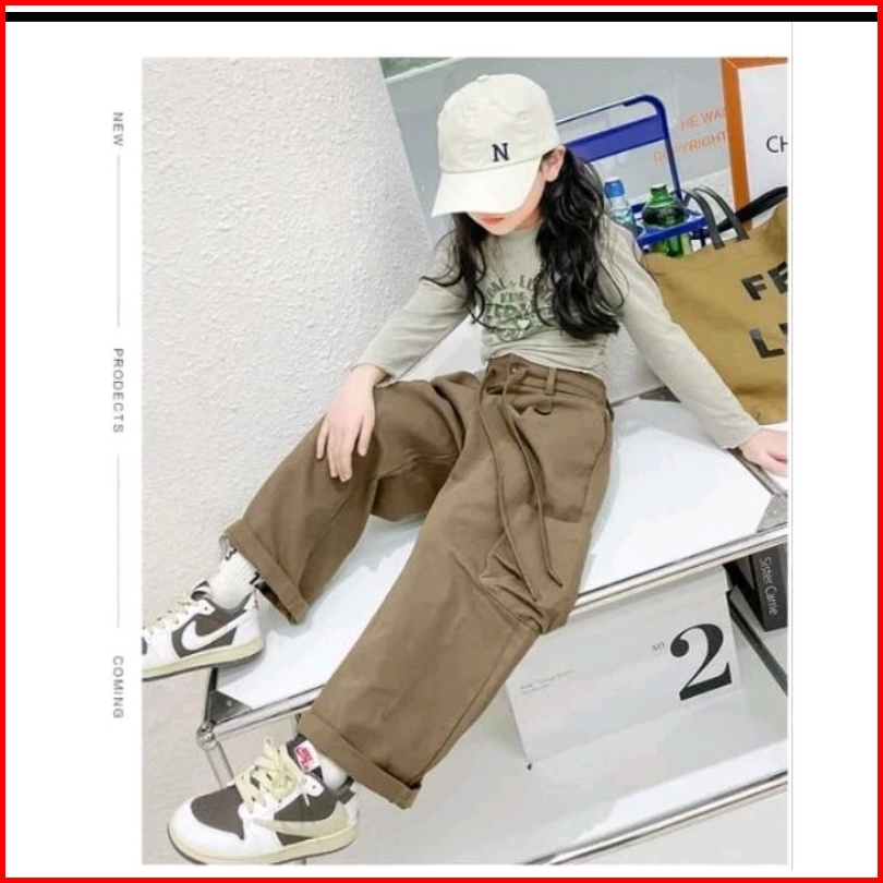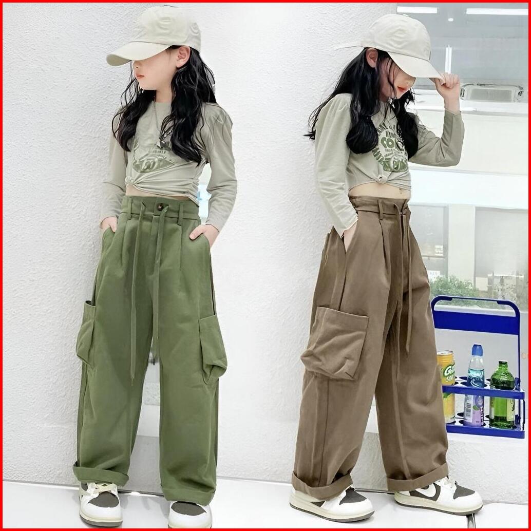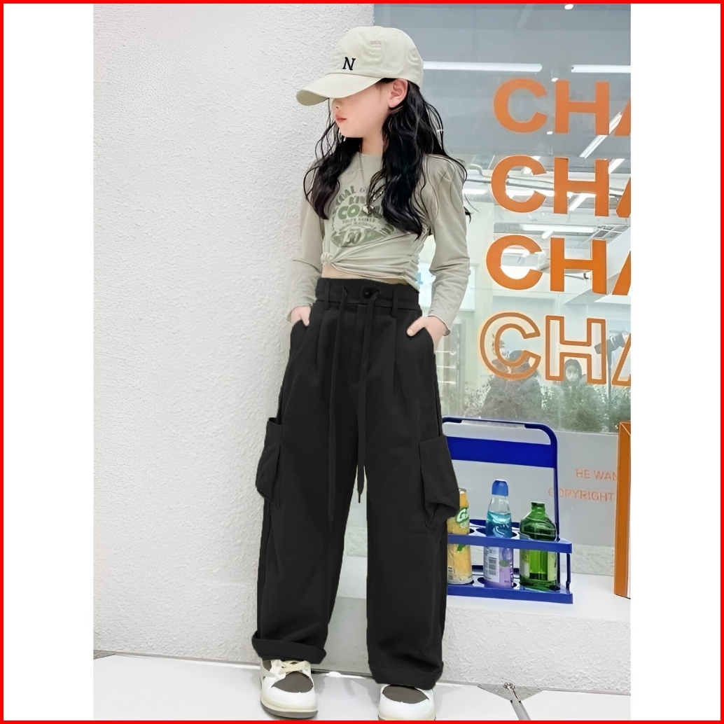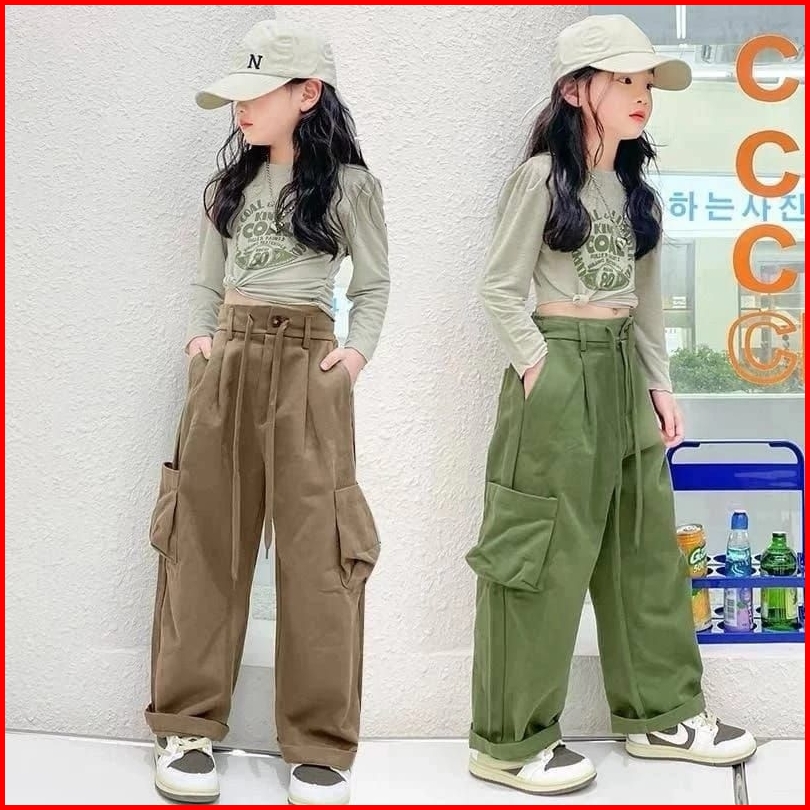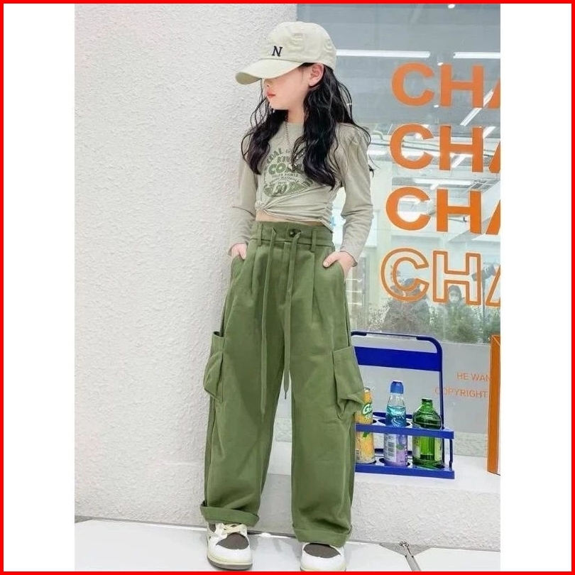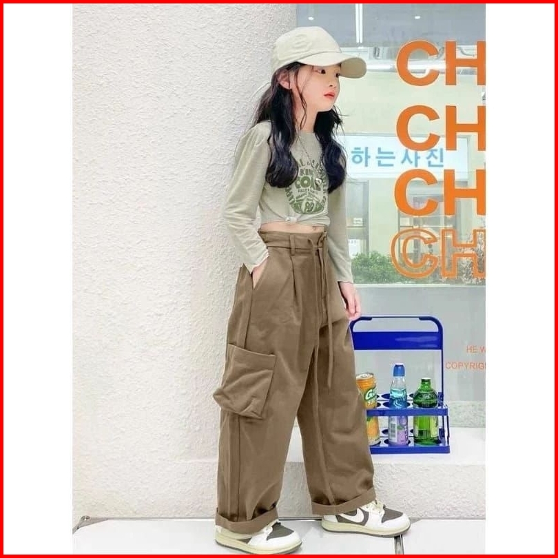 Terlaris Celana Panjang Cargo Loose Pants Highwaist Anak Perempuan Usia 7-13 Tahun Kulot Cargo Anak Tanggung Qualitas Pr