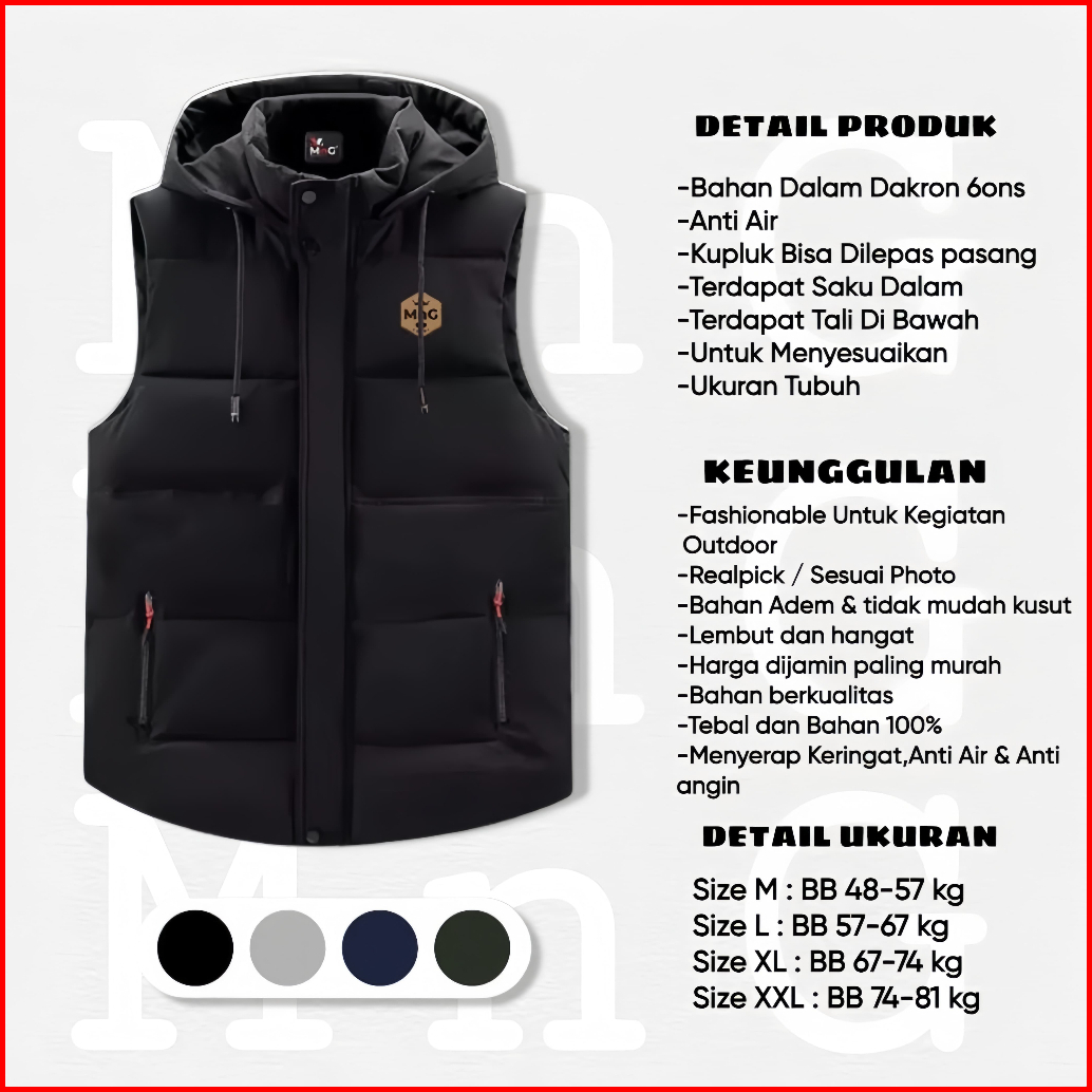 Rompi Taslan Waterproof Tebal Hoodie Pelindung Dada Original Unisex Terbaru Terlaris Pria Wanita