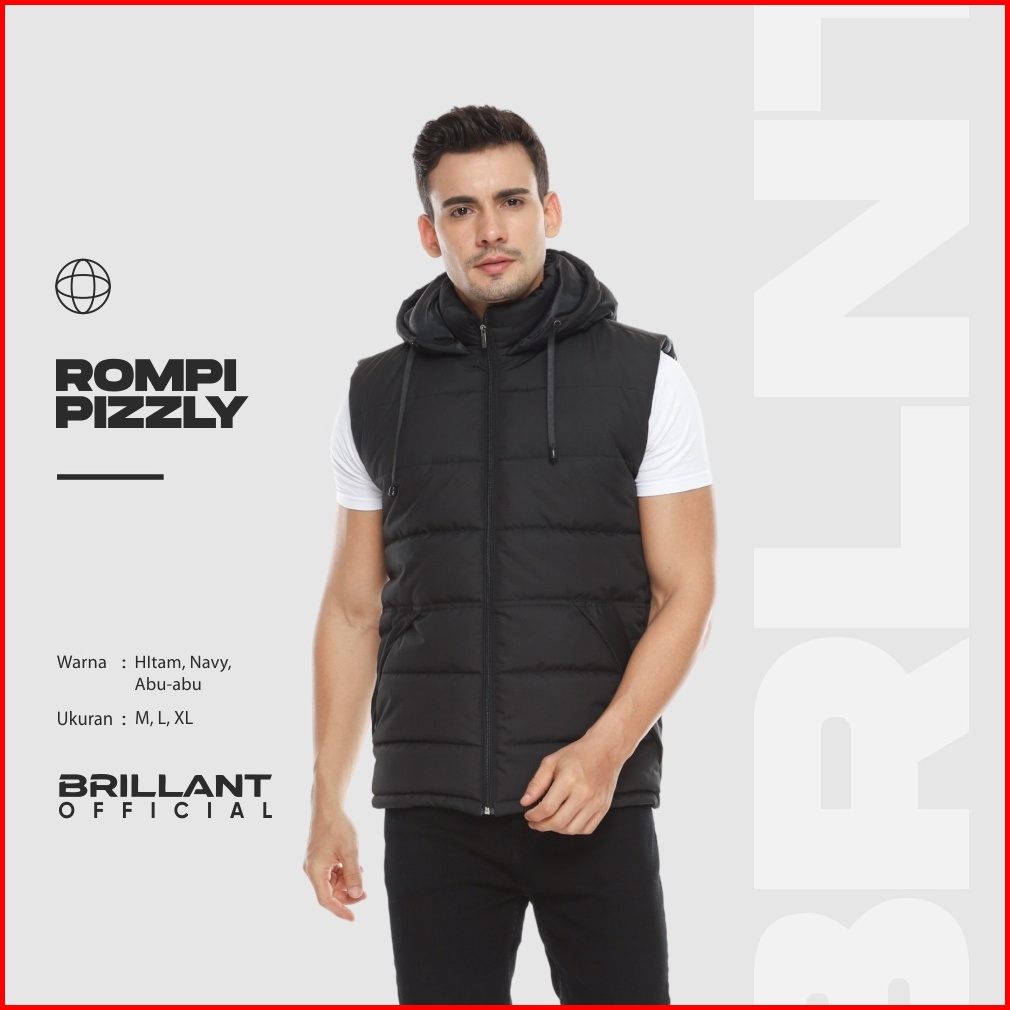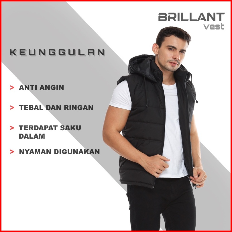 Brillant - Pizzly Vest Gelembung Pria Parasut M-xl Rompi Hoodie Anti Angin Waterproof