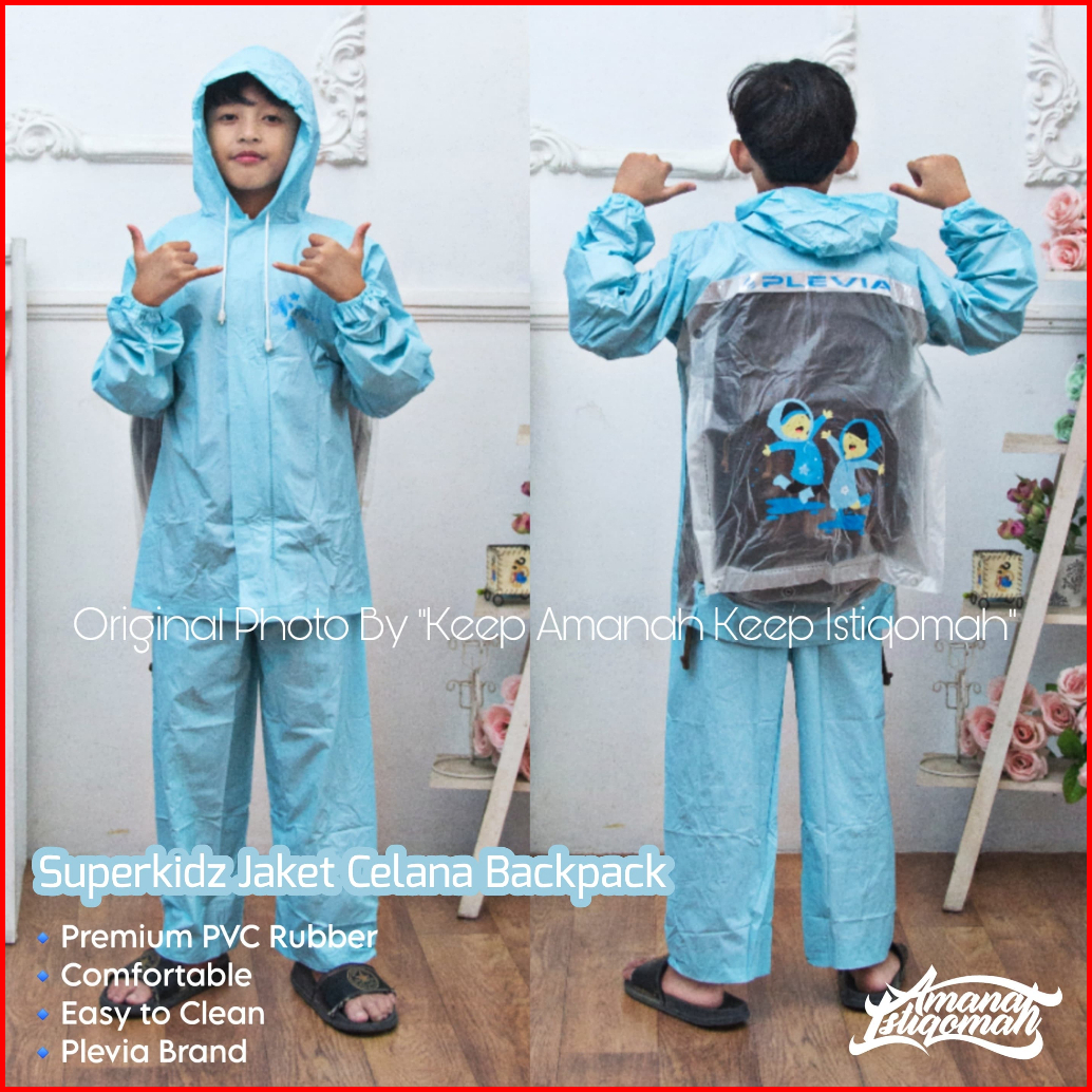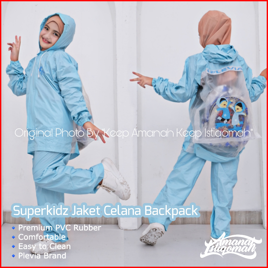 Superkids Jaket Celana Anak Backpack Jas Hujan Anak Backpack