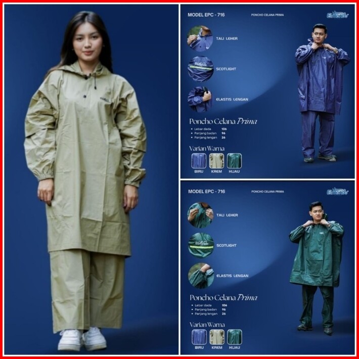 Jas Hujan Ponco Celana Elmondo Prima 716 - Mantel Stelan Poncho Lengan Dewasa Pria Dan Wanita